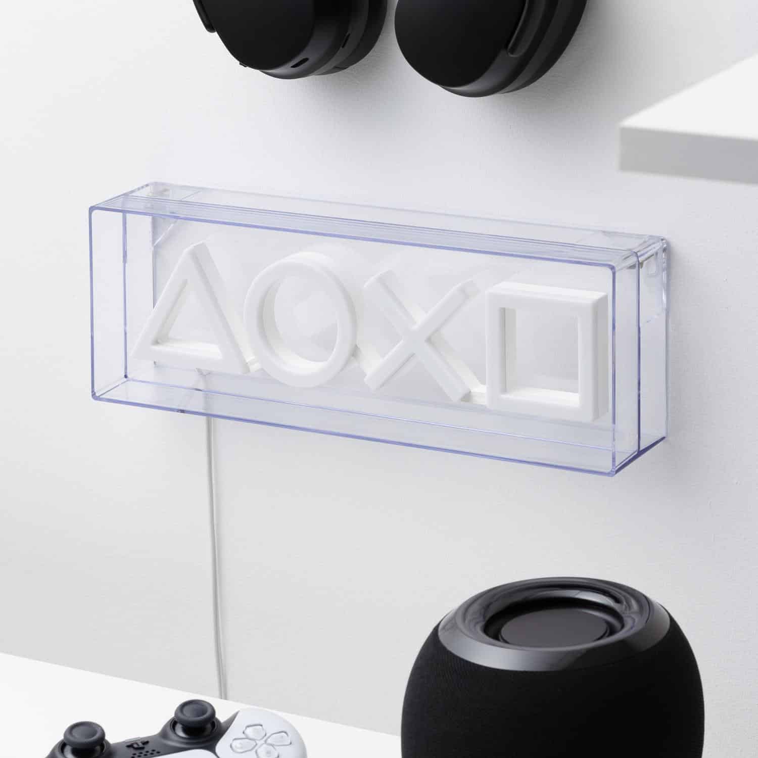 De PlayStation iconen ledlamp laat de bekende controller-symbolen oplichten in neonstijl. Ideaal voor op je bureau, plank of gamehoek. Een stoer cadeau voor gamers en PlayStation-fans.