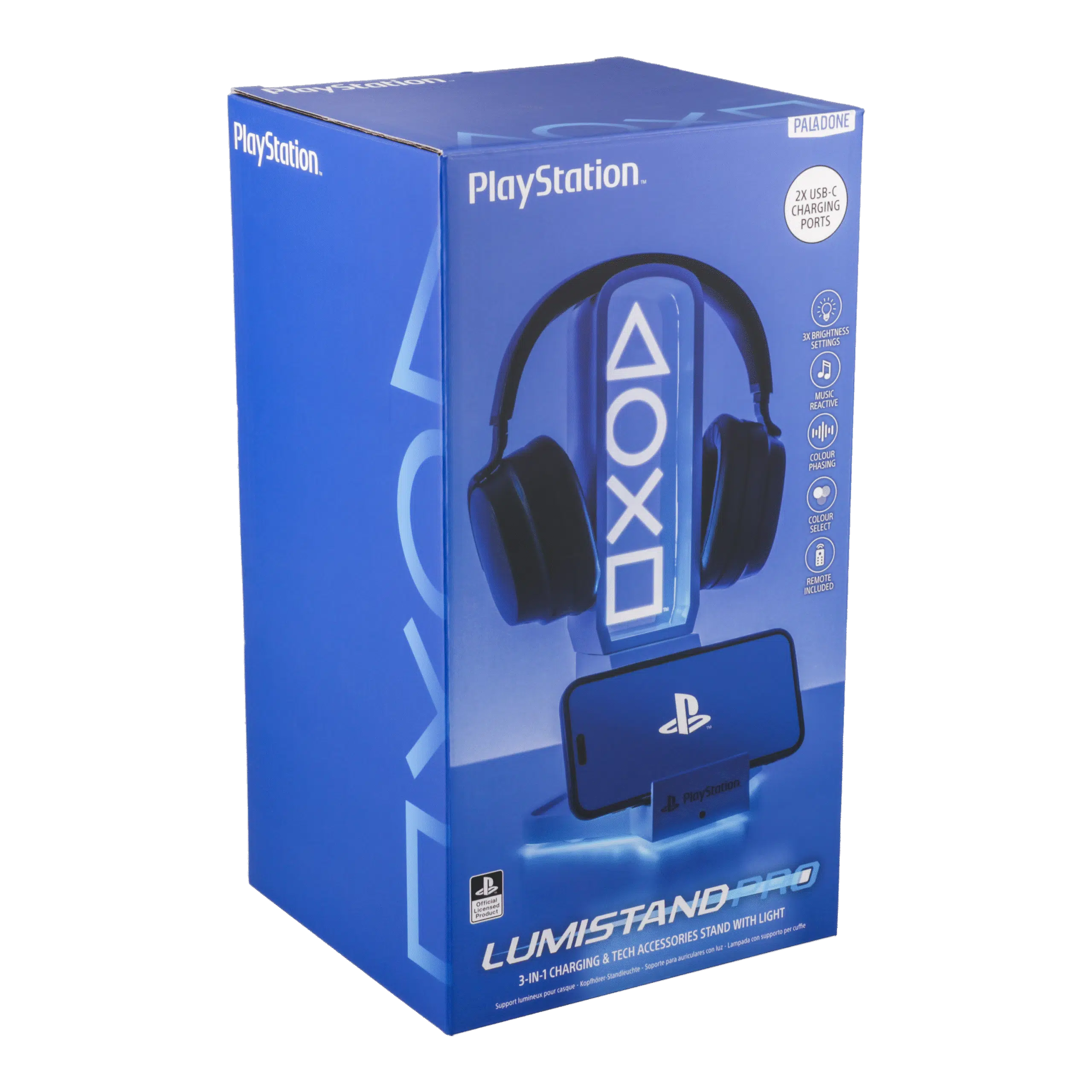 Level up je gaming setup met PlayStation stijl! De Koptelefoonhouder met verlichting van PlayStation heeft de iconische witte PS5 iconen en blauwe verlichting. Niet alleen een plek voor je headset: het is ook een houder voor je controller én je telefoon. Hij heeft drie helderheidsstanden, reageert op muziek en heeft color phasing en color select modes. Alles te bedienen met de bijgeleverde afstandsbediening. Een must-have voor PlayStation-fans!