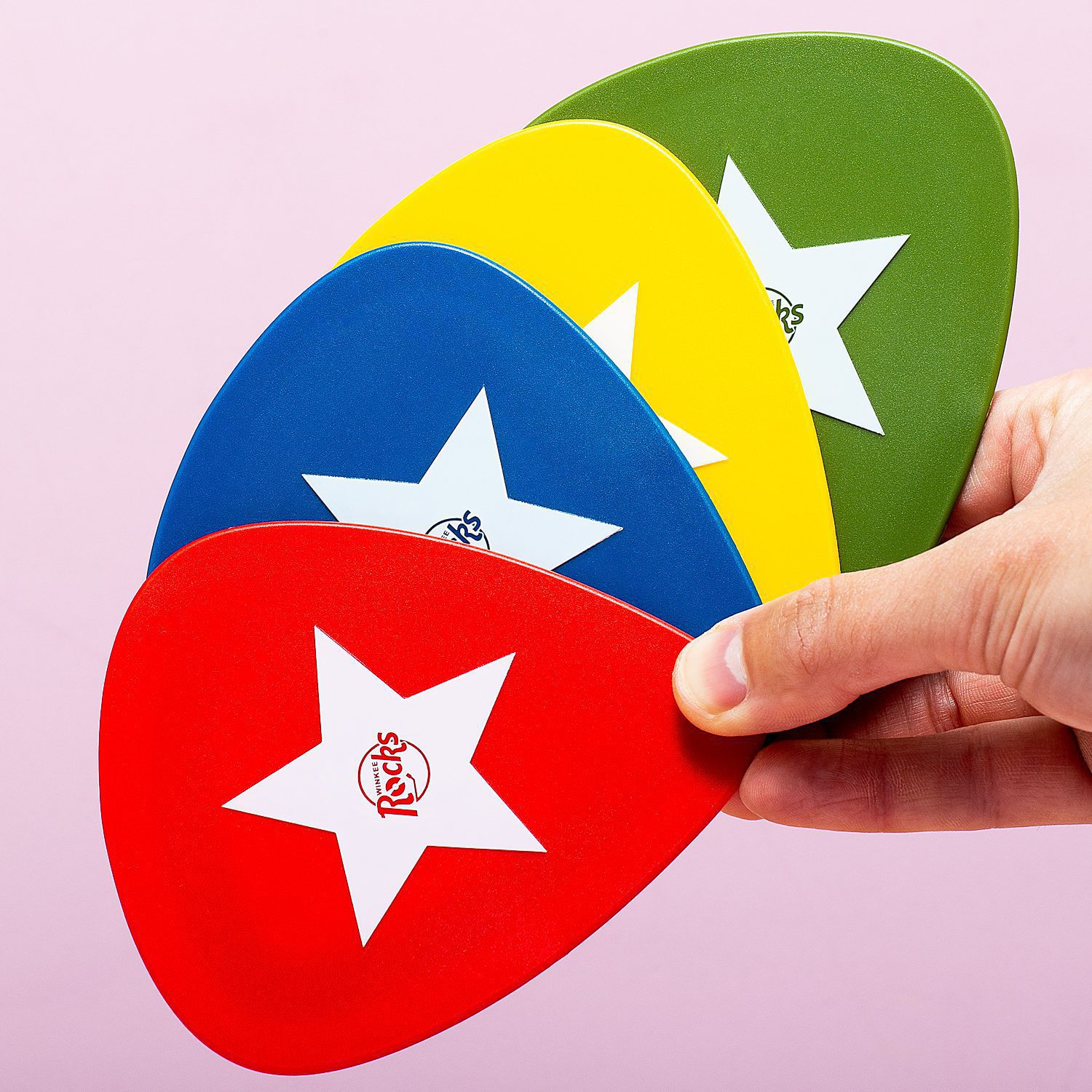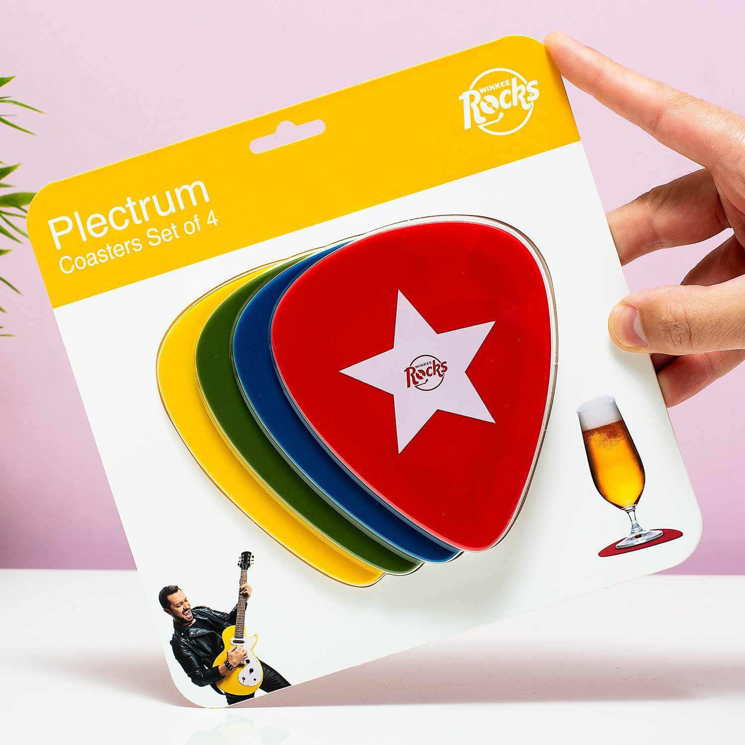 Je kunt wel een stoere rocker zijn, dat wil nog niet zeggen dat jij je tafel niet wilt beschermen tegen krassen en kringen. En dat doe je in gepaste stijl met de Plectrum onderzetters (set van 4) van Winkee. Deze vier onderzetters lijken op een plectrum en hebben allemaal een andere kleur.