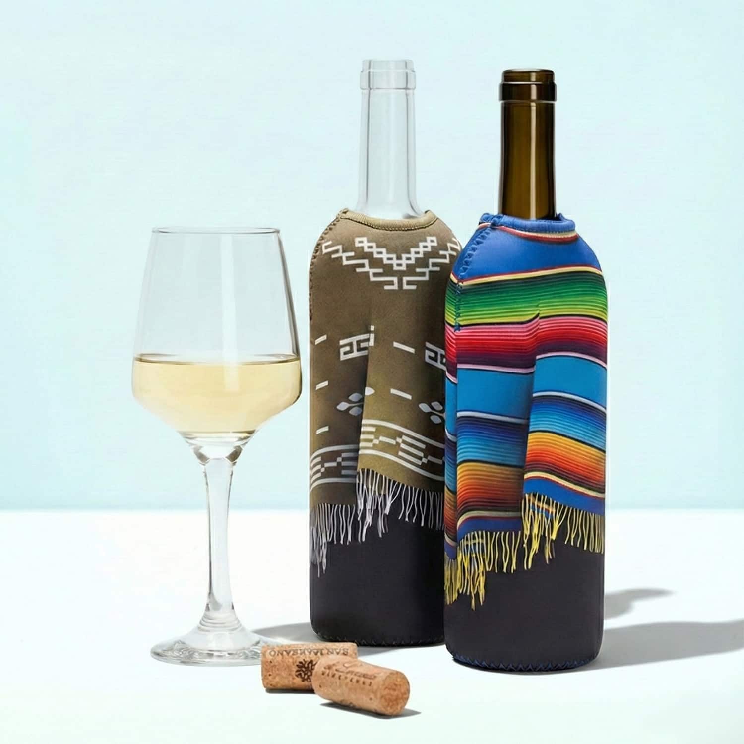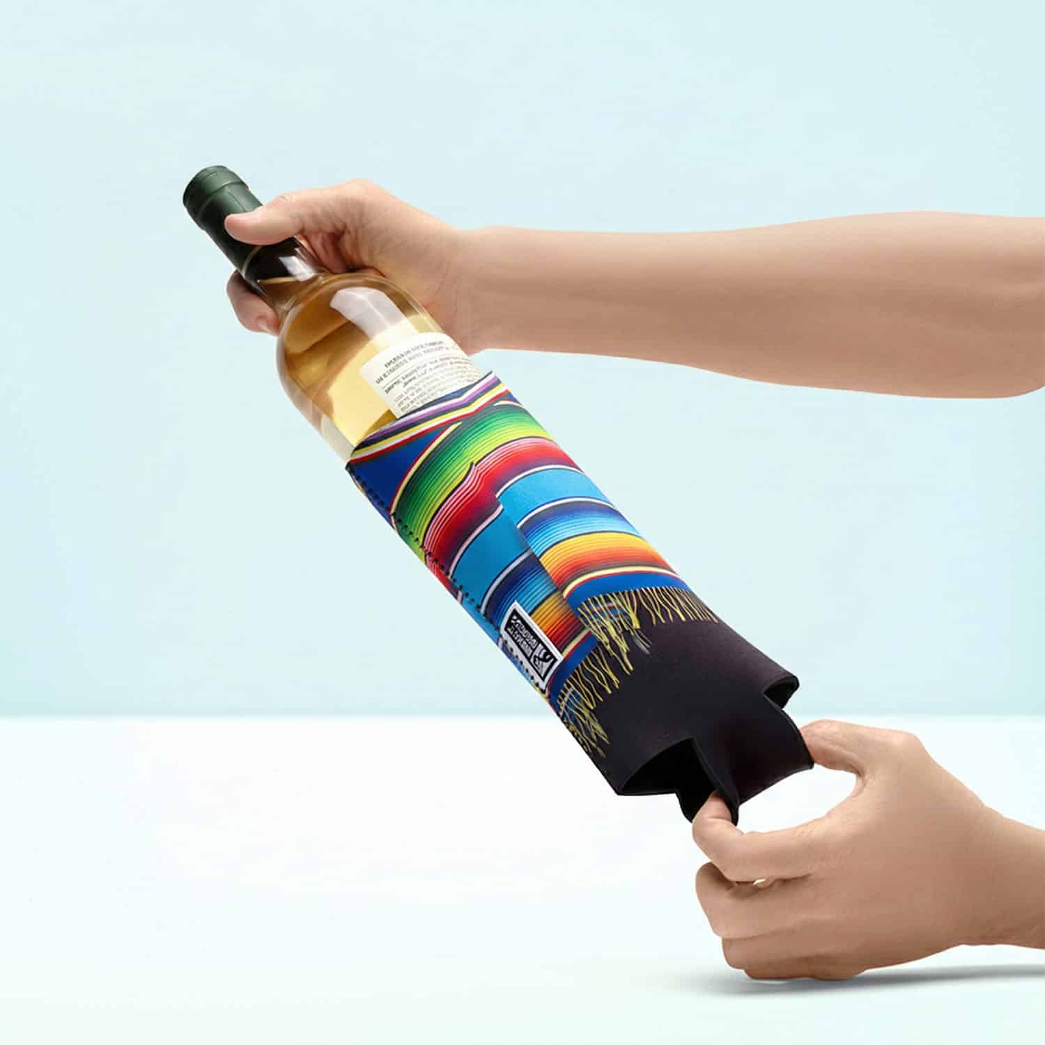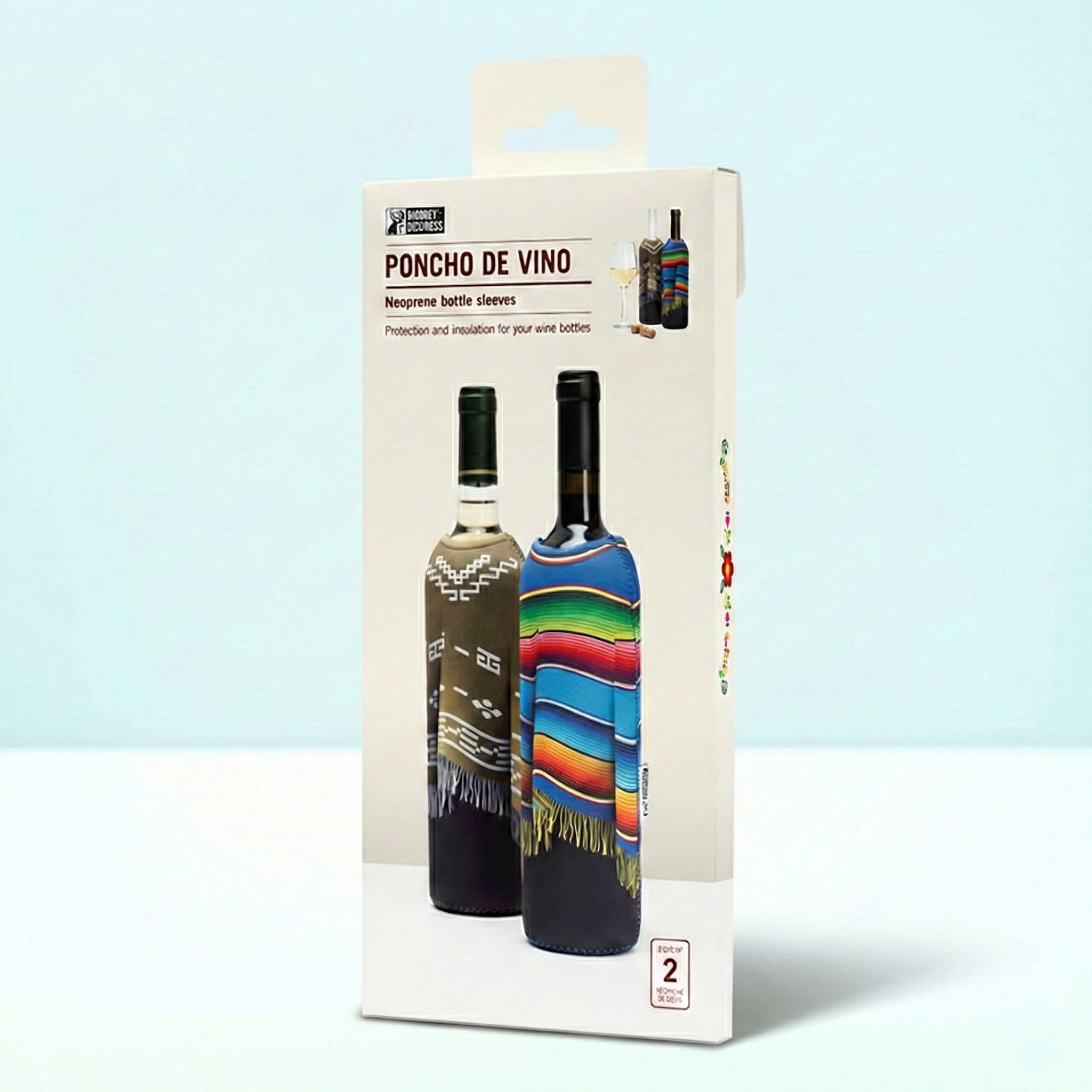 Waarom zou je wijnfles naakt blijven als hij ook een poncho kan dragen? De Poncho wijnkoeler sleeve van Monkey Business kleedt je wijnfles aan in levendige poncho-designs! Deze set van 2 neopreen sleeves houdt je wijn op de perfecte temperatuur en geeft je fles instant persoonlijkheid. Perfect voor dinertjes, BBQ’s of gewoon om je wijnfles wat flair te geven. Een leuk cadeau voor wijnliefhebbers!