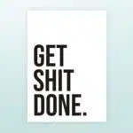 We snappen het: je huis opruimen of uit bed komen op een koude dag is nooit leuk. Maar soms moet je er even de schouders onder zetten om iets gedaan te krijgen. De Poster Get shit done is een motiverende poster voor mensen die af en toe een schop onder hun hol nodig hebben. De poster herinnert je eraan om gewoon eens aan het werk te gaan en te doen wat je moet doen. En dat kunnen de meesten van ons wel gebruiken.