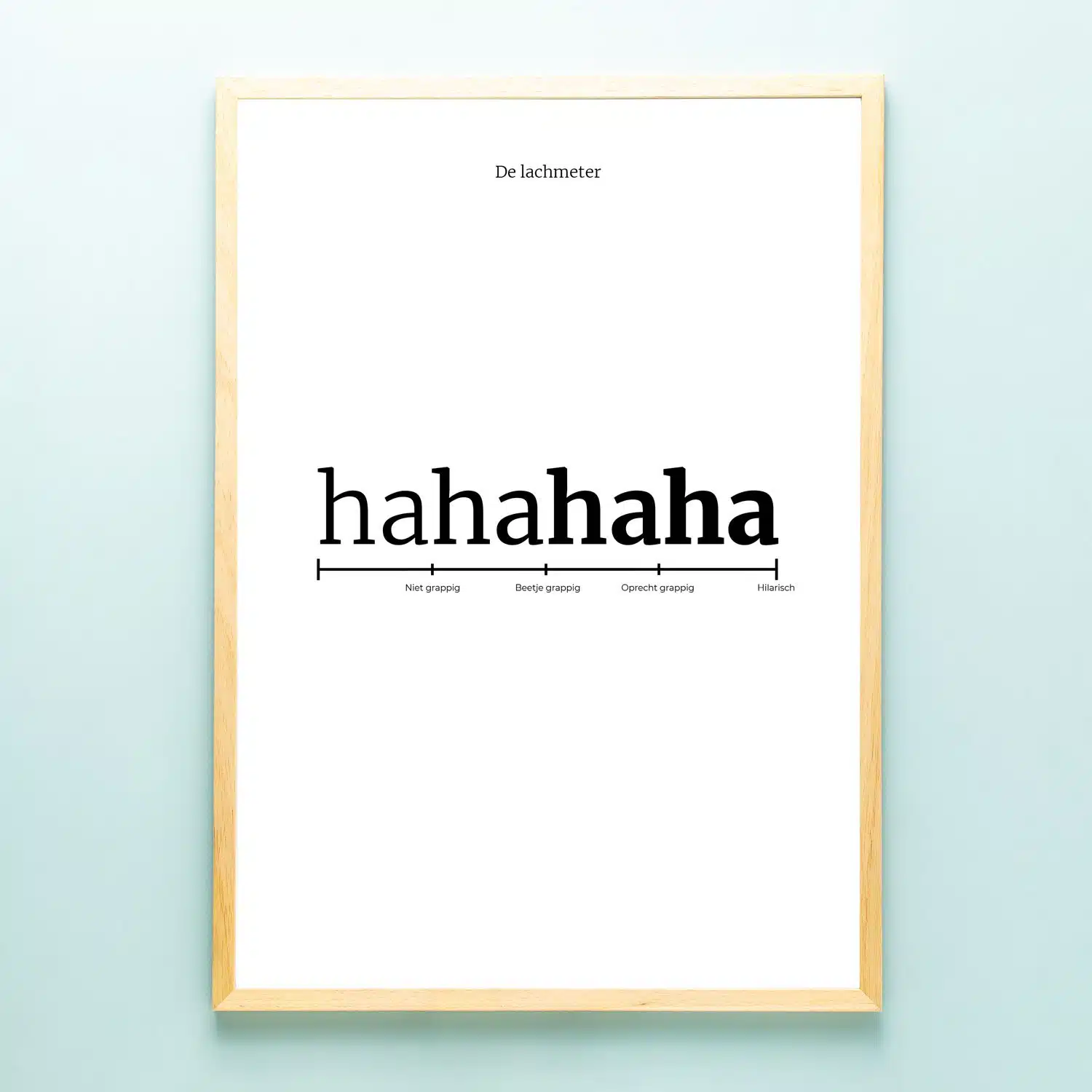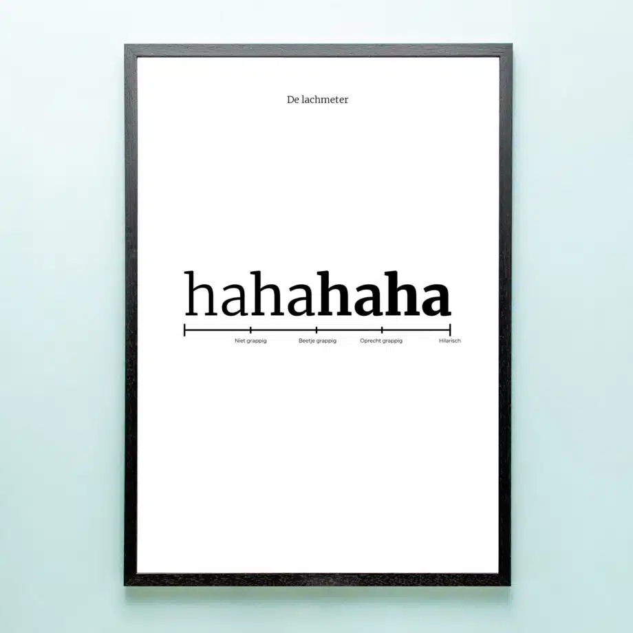 Er zijn altijd mensen die denken dat ze grappiger zijn dan ze daadwerkelijk zijn. Geef die oude oom of flauwe collega de Poster Haha cadeau. Dan kunnen ze voortaan zien hoe grappig hun geintjes echt zijn. Op de poster staat een lachmeter, waaraan ze kunnen aflezen hoe leuk iemand hun grap echt vond.