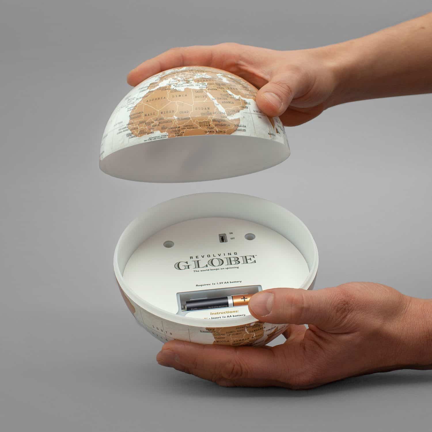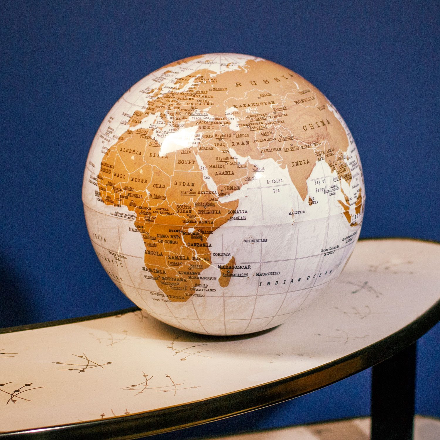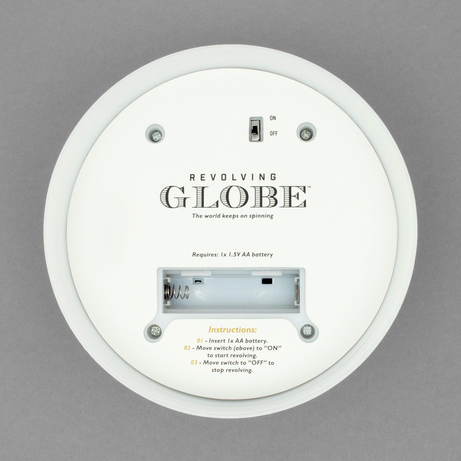Hoe leer je je kinderen (of leerlingen) dat de wereld echt draait? Nou, met de Draaiende wereldbol van Luckies bijvoorbeeld. Deze unieke wereldbol heeft een onzichtbare basis, waar hij op draait. In veertien seconden kun jij de wereld rond. De globe is wit en heeft een goudbruine bedrukking. Hij werkt op één AA-batterij, dus je kunt hem overal neerzetten. Leuk voor in de klas, op kantoor of voor in de kinderkamer.