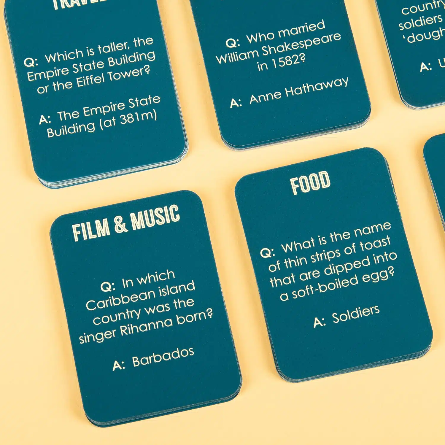 Ben je dol op kennisspelletjes, dan is de Pub Quiz in een blikje van Talking Tables iets voor jou. Dit leuke en compacte spelletje is ideaal om mee te nemen op reis en daar te spelen met je reisgenoten. De pubquiz bestaat uit 132 Engelstalige vragen in zes categorieën: algemene kennis, sport, eten & drinken, film & muziek, reizen en geschiedenis. De regels zijn simpel: degene of het team met de meeste goede antwoorden wint. En niet zomaar een prijs, maar de papieren goudkleurige trofee die in het blikje zit!