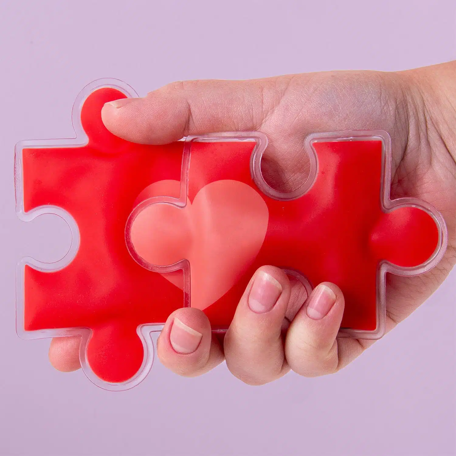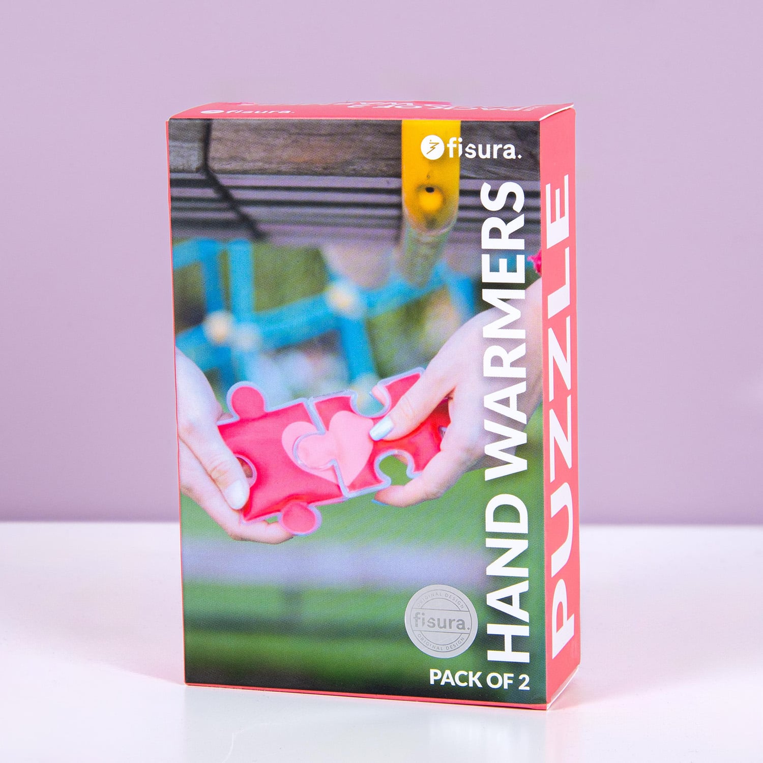 Met de Puzzel handverwarmers (set van 2) van Fisura op zak heb je nooit meer last van koude handen! Deze handige handverwarmers verwarmen je ijsklopjes op tot je ze weer gewoon kunt gebruiken. De handverwarmers komen in een set van twee: het zijn twee rode puzzelstukjes die in elkaar passen en samen het hartje compleet maken. Geef het ene deel aan je lief en houdt de andere zelf, of hou ze allebei lekker zelf als je een echte koukleum bent. Je gebruikt de handverwarmers door (eenmalig) het metalen zegel te breken, waarna de gel opwarmt. Daarna kun je de handverwamers opnieuw gebruiken door ze op te warmen in heet water.