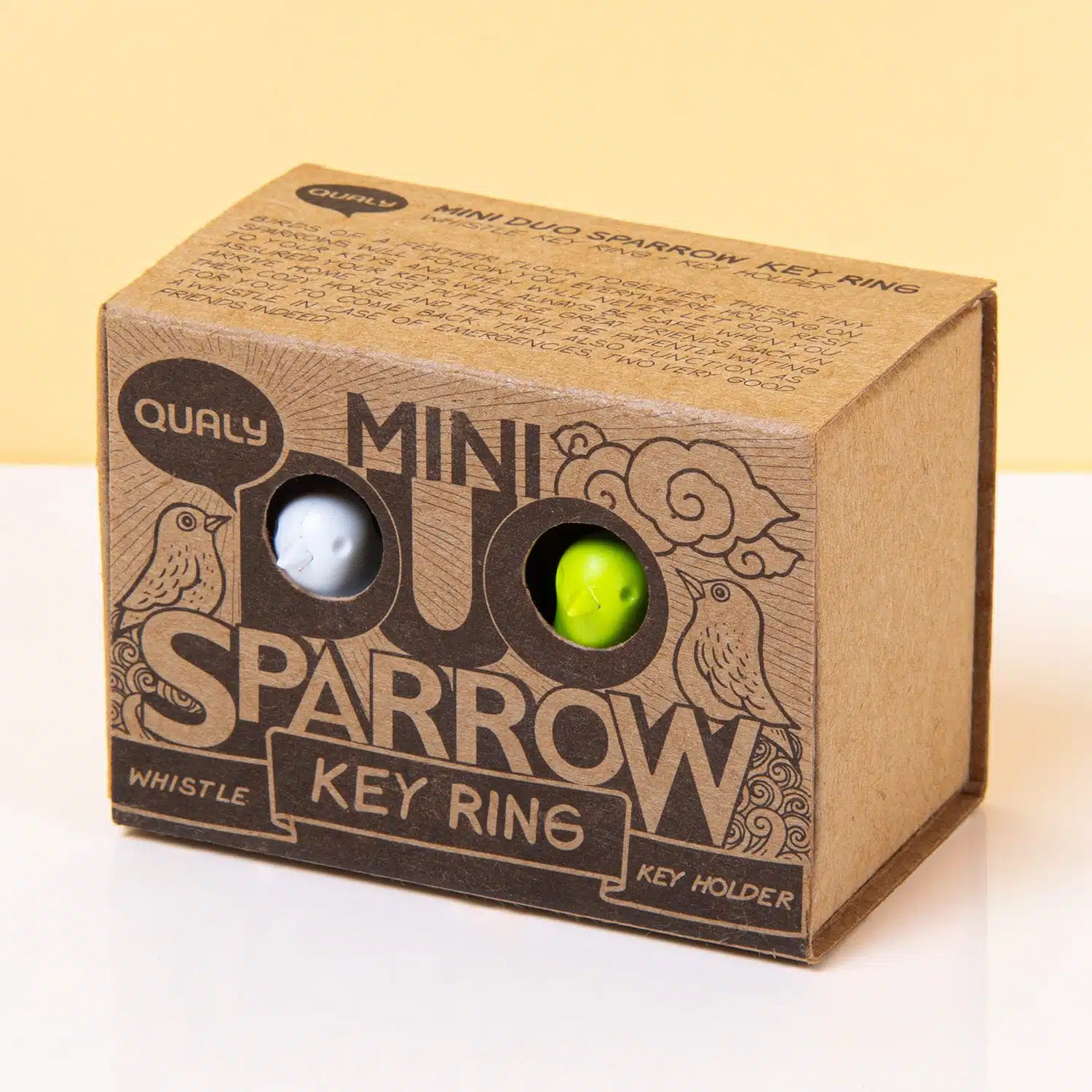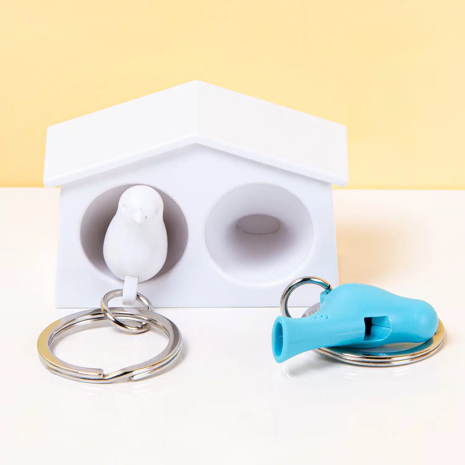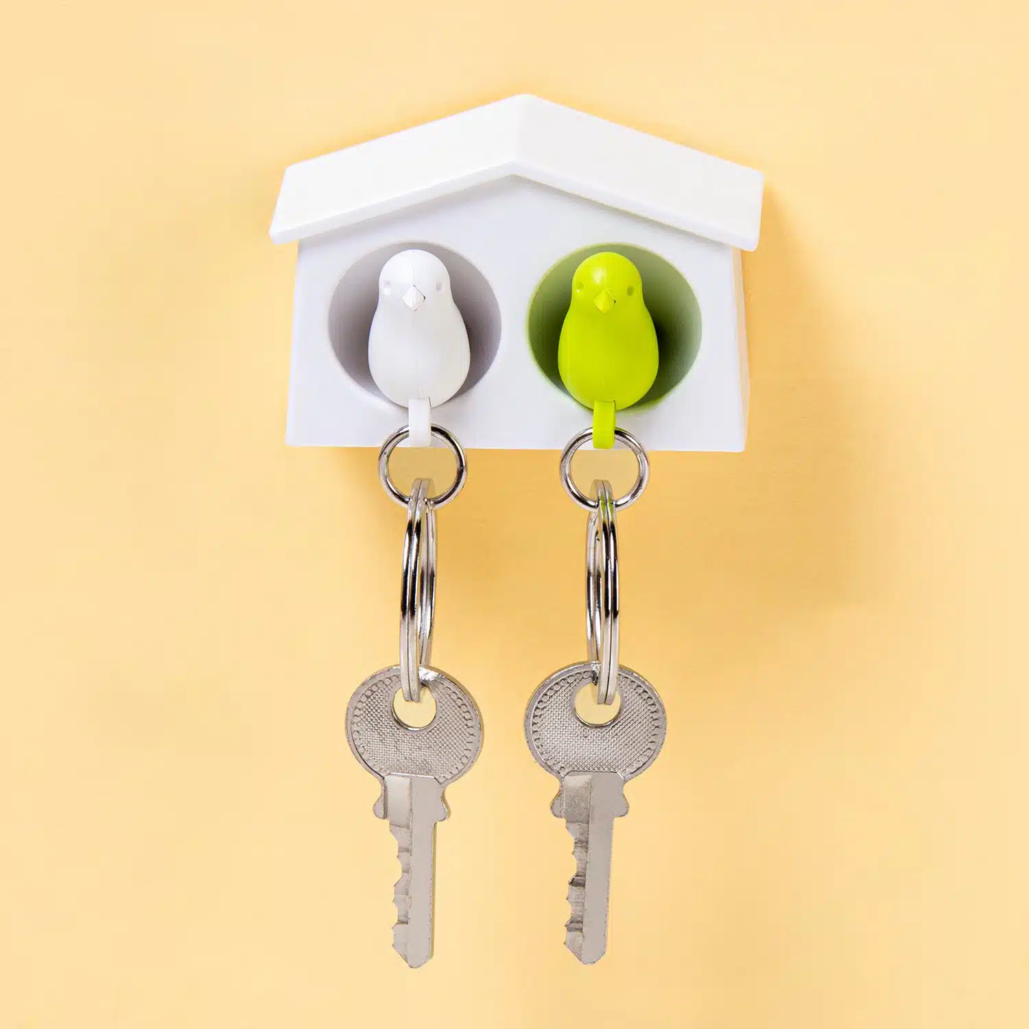 Ben je altijd je sleutels kwijt omdat je geen vaste plek voor ze hebt? Zitten ze de ene keer in een broekzak en liggen ze de volgende keer per ongeluk in de koelkast? Dan is het echt tijd om de vogels van de Mini Sparrow Duo sleutelhanger van Qualy op je sleutels te laten passen. In dit vogelhuisje zitten twee lieve vogels waaraan je je sleutelbos kunt ophangen. De vogels zijn verkrijgbaar in verschillende kleuren. Met dit setje heb je ook direct een sleutelhanger voor je lief.