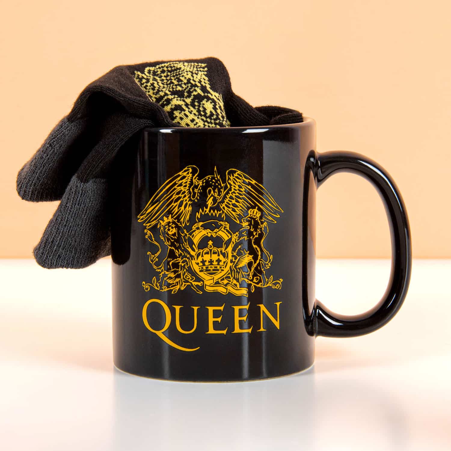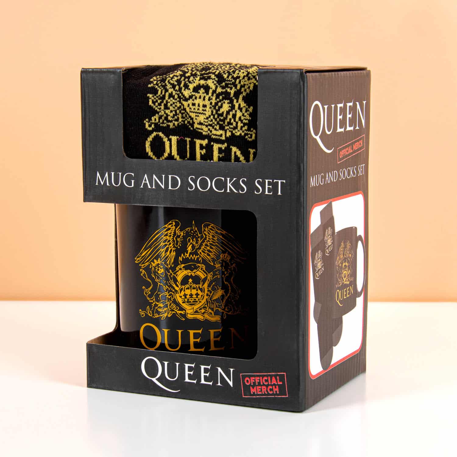 Fan van Freddie Mercury en zijn band? Dan is deze Queen cadeauset een echte must-have. De set bestaat uit een mok en sokken met het iconische Queen-logo.