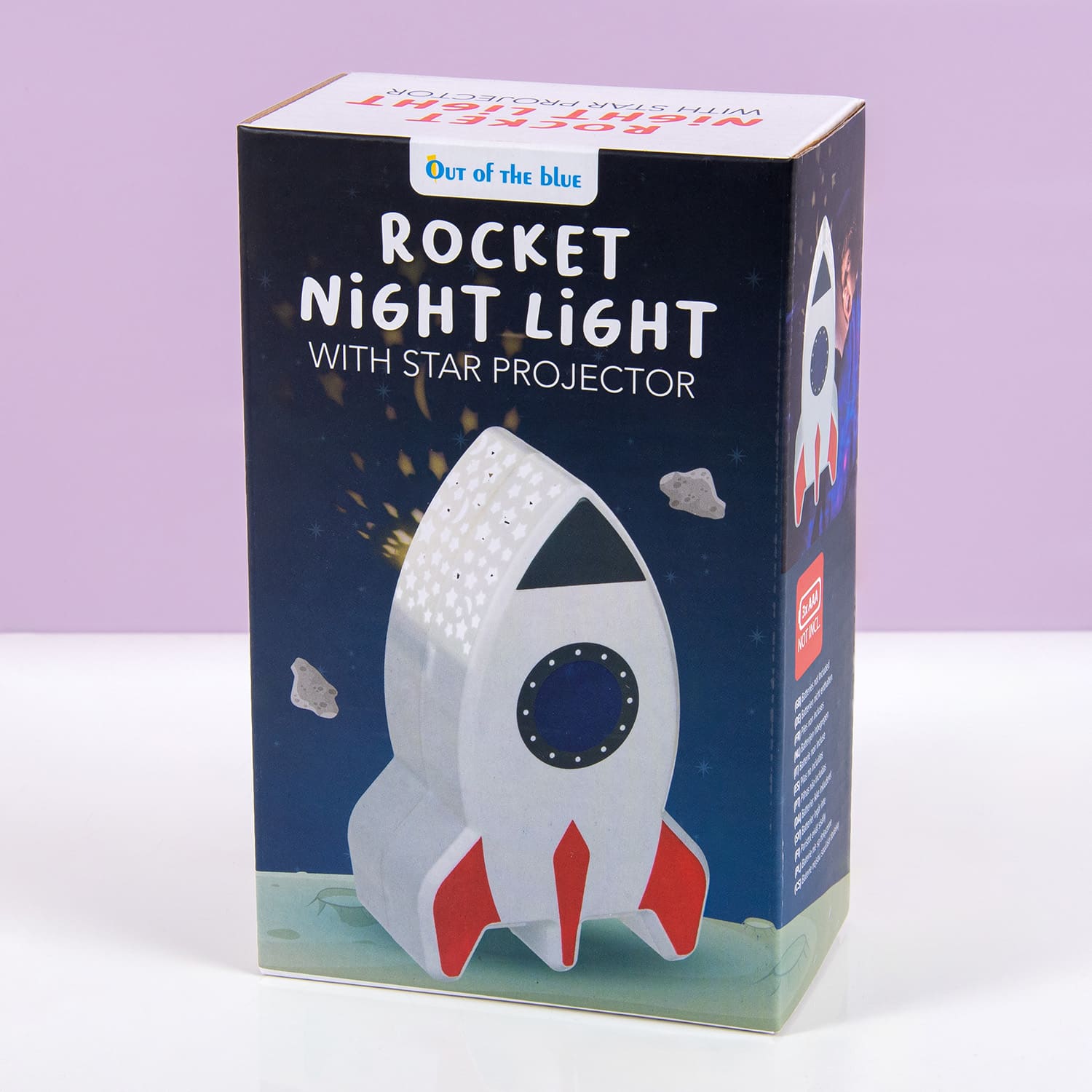 De kinderkamer is niet compleet zonder een leuk lampje, dat je ‘s avonds kunt gebruiken als nachtlampje. De Raket projector is zo’n lampje. Het ziet eruit als een stoere raket, maar is ook heel geschikt voor als je kindje liever niet gaat slapen in het donker. Aan de bovenkant van de lamp zitten open sterretjes en maantjes, waardoor het licht naar buiten schijnt. Op die manier krijg je een sterrenhemel op je plafond of muur.