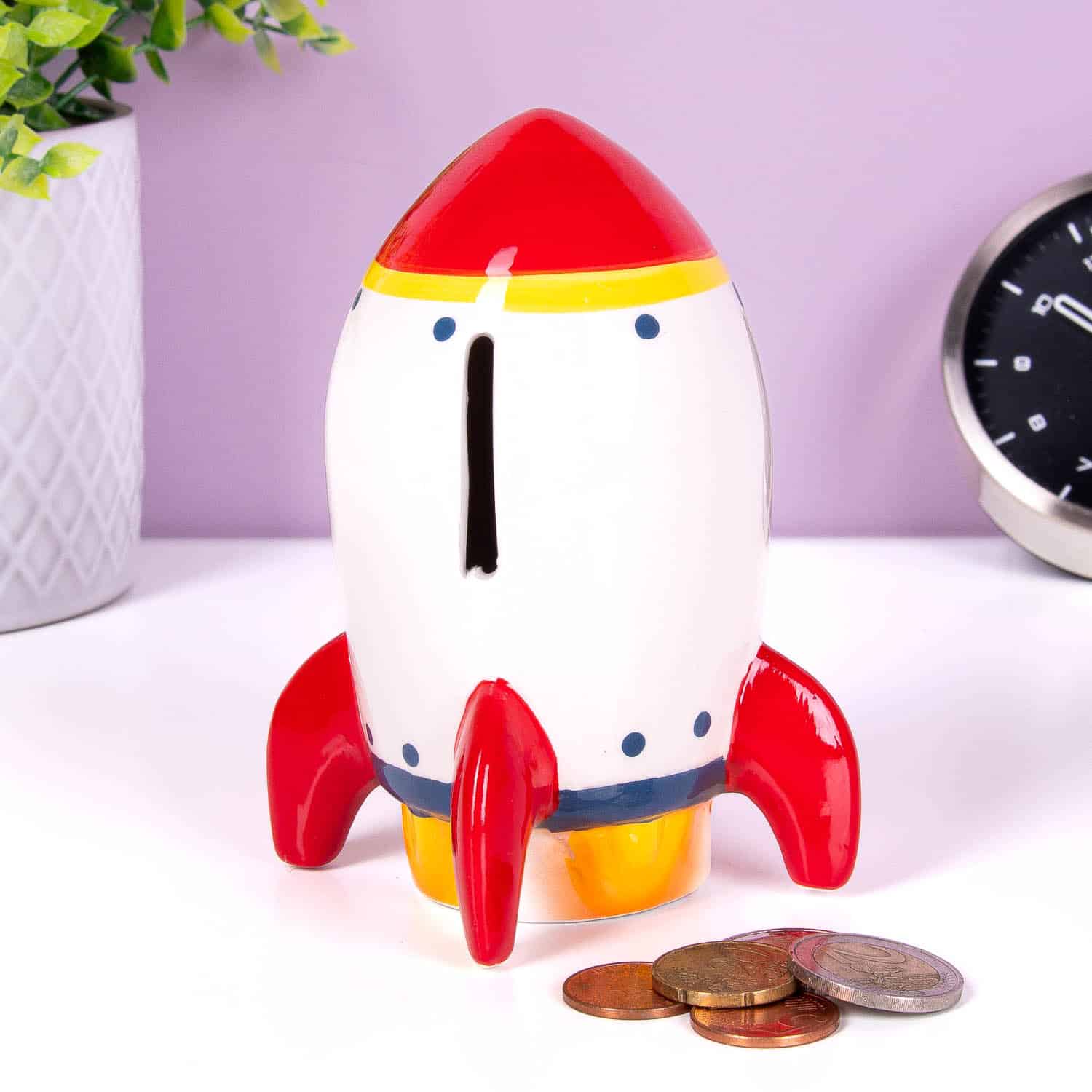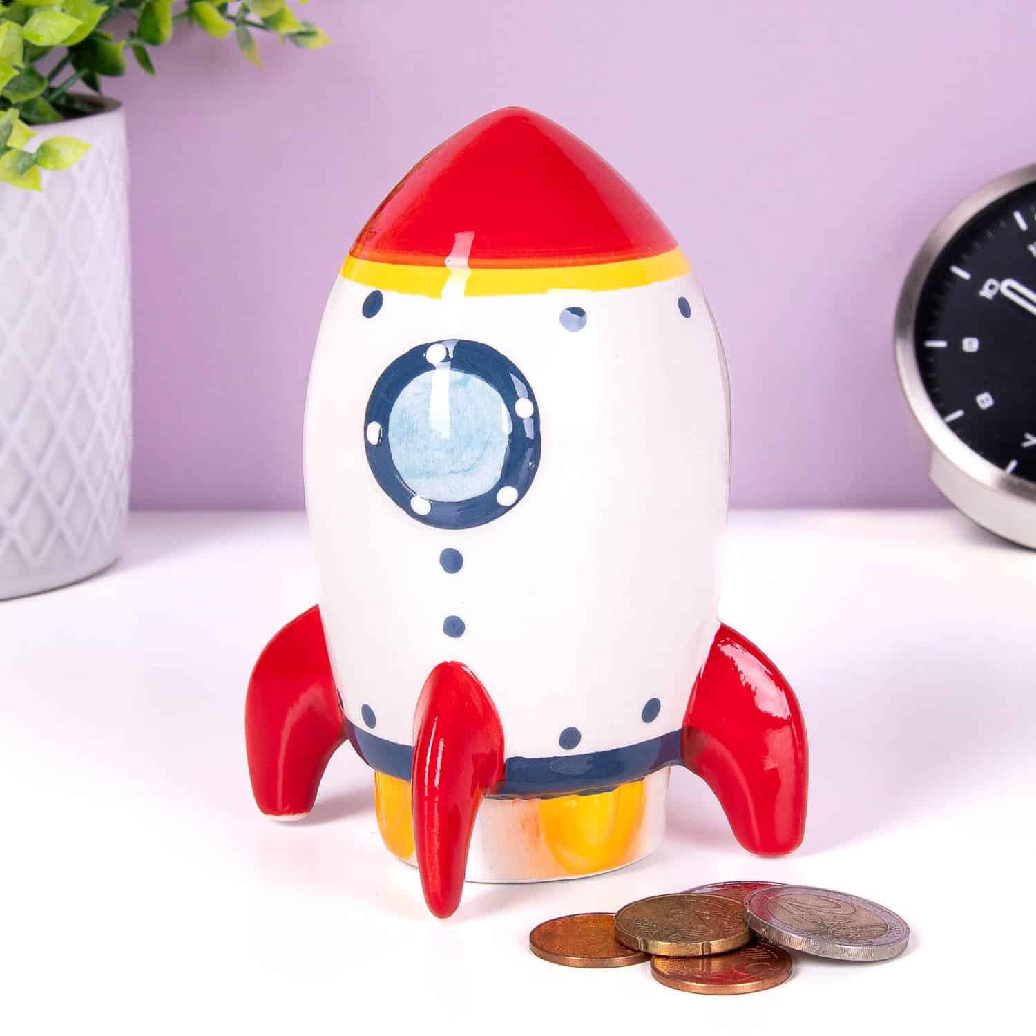 De Raket spaarpot is perfect voor iedereen die droomt van grote avonturen. Deze stoere spaarpot in de vorm van een ruimteraket helpt je sparen voor je volgende reis, festival of gave aankoop. Gooi je kleingeld erin en kijk hoe je spaargeld de hoogte in schiet! Perfect cadeau voor kids die ruimtevaarder willen worden, of voor volwassenen met grote dromen. Want elke grote reis begint met het sparen van een paar muntjes!