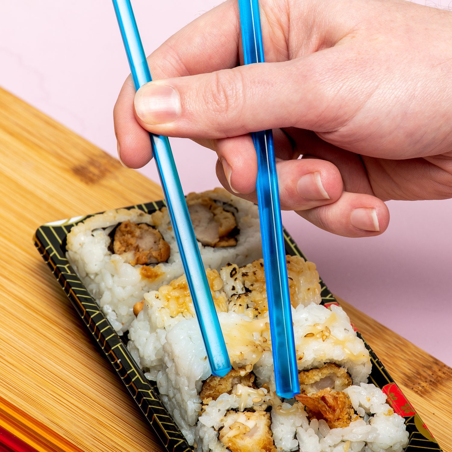 Sushi eten met vrienden: er is weinig leukers. Maar met de Regenboog eetstokjes (set van 6) van Kikkerland til je je dinner date naar een nog hoger level. De vrolijke gekleurde chopsticks maken je nou eenmaal blij. In de verpakking zitten zes setjes eetstokjes in de kleuren van de regenboog: rood, oranje, geel, groen, blauw en paars. Door het antisliplaagje aan de punten is het makkelijker om glibberig voedsel, zoals sushi en noedels, vast te pakken. De stokjes zijn herbruikbaar en dus beter voor het milieu.