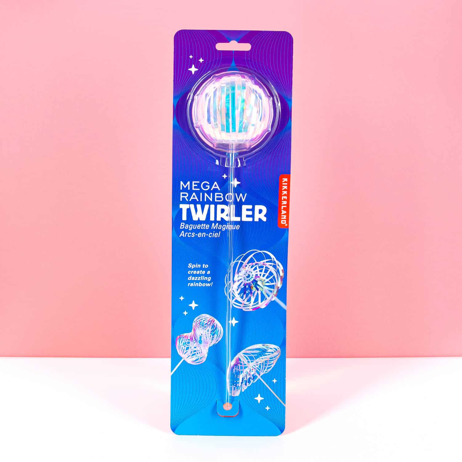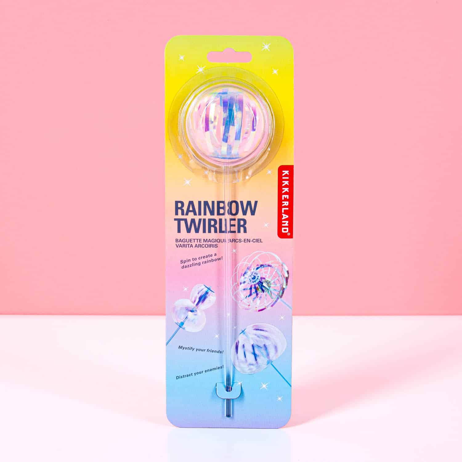 Is het een regenboog? Is het een zeepbel? Nee, dat is het niet: het is de Regenboog spinner van Kikkerland! We snappen je verwarring want zelf zijn wij ook nog steeds onder de indruk van dit bijzondere stukje speelgoed. De Regenboog spinner is een stokje met dunne sliertjes die een holografisch effect geven. Als je het stokje laat draaien, dan vormen de sliertjes een soort van zeepbel met regenboogkleuren erin. Doordat er verschillende figuren te maken zijn, is dit een fijne bezigheidstherapie. Bijvoorbeeld voor de kids op een saai feestje van de grootouders. Hebben ze ook gelijk een publiek dat ze makkelijk kunnen foppen.