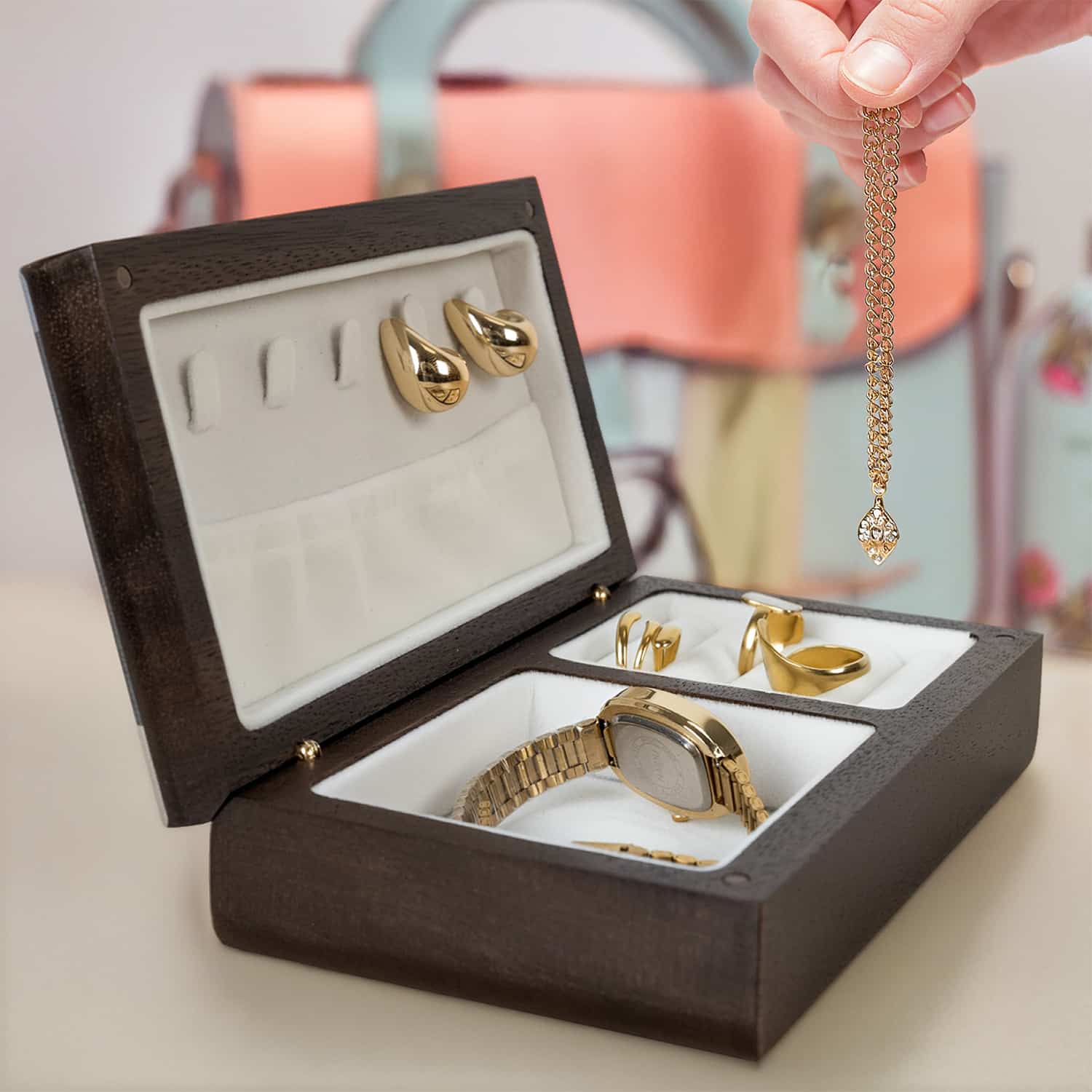 Het Retro camera sieradendoosje van Fisura is speciaal ontworpen om sieraden in op te bergen. Doe jij elke avond je trouwring af? Doe hem in dit sieradendoosje, in de vorm van een retro camera, en hij is opgeborgen op een veilige plek. Zet het doosje op je nachtkastje, dan ben je je mooiste sieraden nooit meer kwijt. De vakjes zijn gevoerd met velvet en beschadigen je sieraden dus niet.