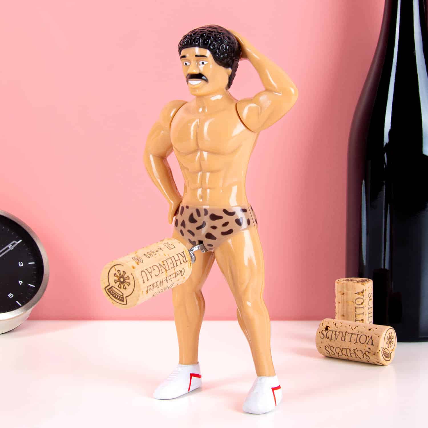 Is het zijn snor, krullenbol of het kleine broekje? De Retro man kurkentrekker zou niet misstaan in een bodybuildingcompetitie uit de jaren 80. Deze hilarische kurkentrekker is het perfecte cadeautje voor elke wijnliefhebber met een flinke dosis humor.