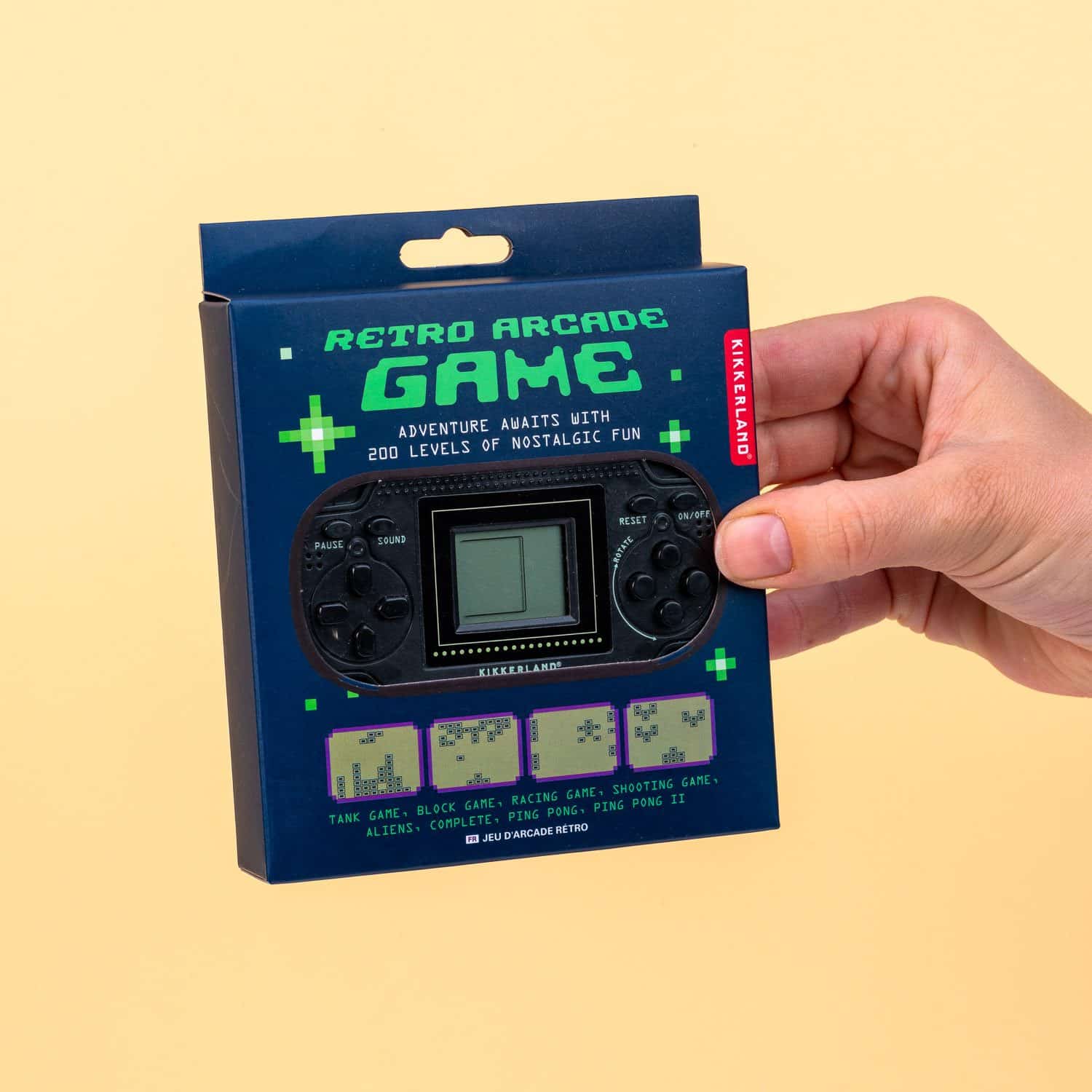 De jaren negentig roepen nostalgische gevoelens op bij veel mensen. Met de komst van de spelcomputer konden we opeens overal gamen. Met de komst van de smartphone werd dat heel normaal, maar als je eens lekker wilt gamen zonder gestoord te worden door allerlei berichten, kies dan voor de Retro spelcomputer van Kikkerland. Op deze old school game console speel je heel veel verschillende spelletjes. De arcade game is zo klein, dat hij in de palm van je hand past.