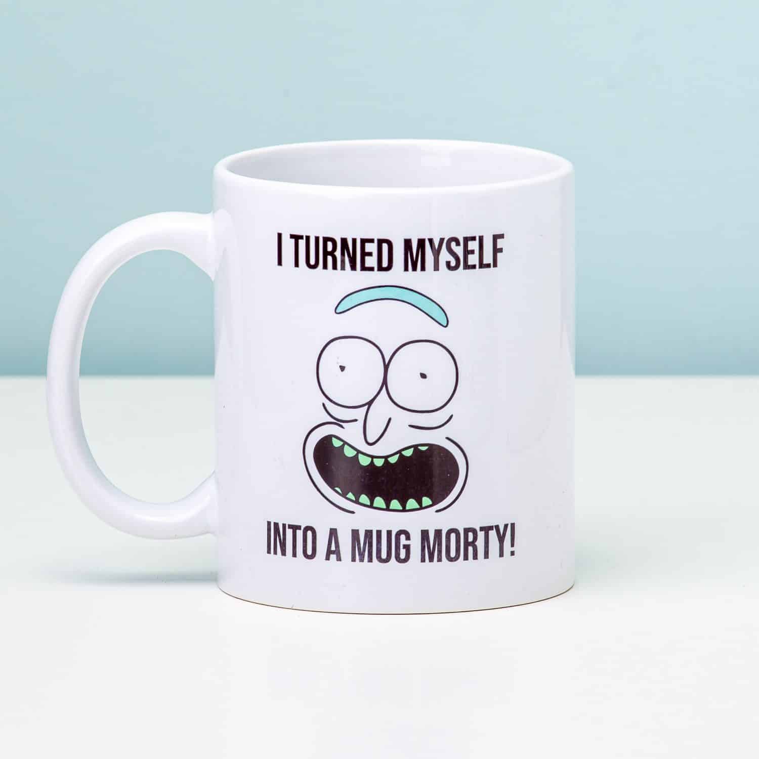 Fans van Rick and Morty opgelet! Vond jij de scene waarin Morty in een auto veranderde ook zo grappig? De I Turned Myself Into A Mug mok van Rick and Morty is daarop geïnspireerd. Voortaan drink jij je koffie uit deze grappige mok, met het gezicht van Rick daarop, vergezeld van de tekst: I Turned Myself Into A Mug Morty.