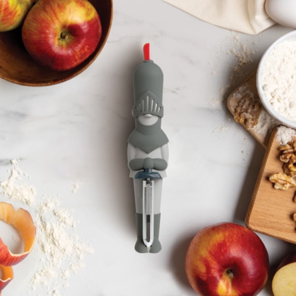 Tijd om je groenten ridderlijk te schillen! Maak kennis met Sir Peels A-Lot, de Ridder dunschiller van Ototo. Deze dunschiller in de vorm van een ridder heeft een scherp roestvrijstalen mes en kan rechtop staan. Perfect voor het schillen van aardappelen, wortels en andere groenten. Ook leuk als decoratie in je keuken. Een grappig cadeau voor kookliefhebbers!