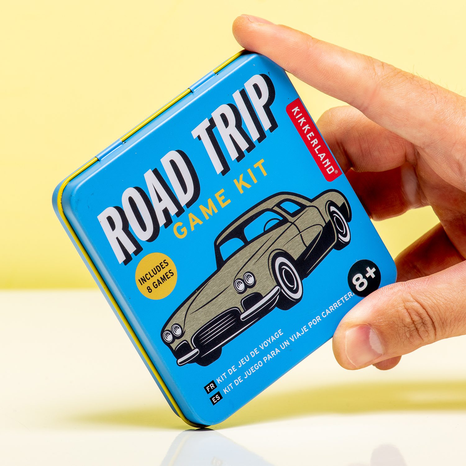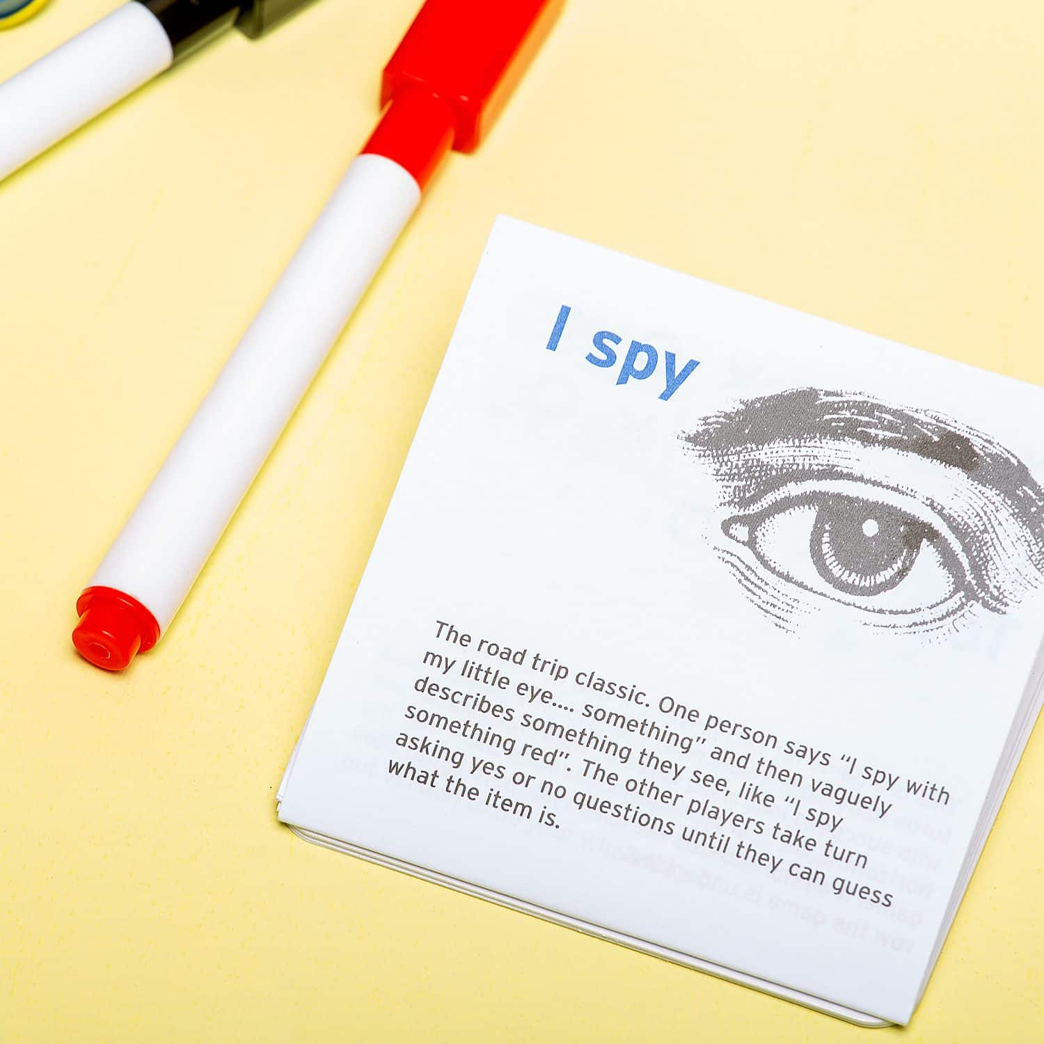 Een dag in de auto om op je vakantiebestemming te komen is meestal niet zo leuk. Verdrijf de verveling met de Road Trip kit van Kikkerland! In dit vrolijke blikje zitten acht spelletjes die je kunt doen in de auto. Ze komen met twee uitwisbare stiften en de kaartjes zijn steeds opnieuw te gebruiken. Speel kruisje-nulletje, galgje, auto bingo en nog vijf andere spelletjes. Voor je het weet ben je op je bestemming aangekomen. Of heb je in elk geval even geen ruzie op de achterbank.