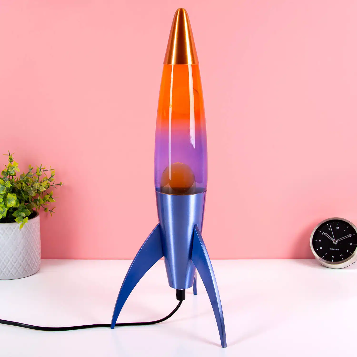 Lavalamp in raketvorm in geel en blauw van Fisura