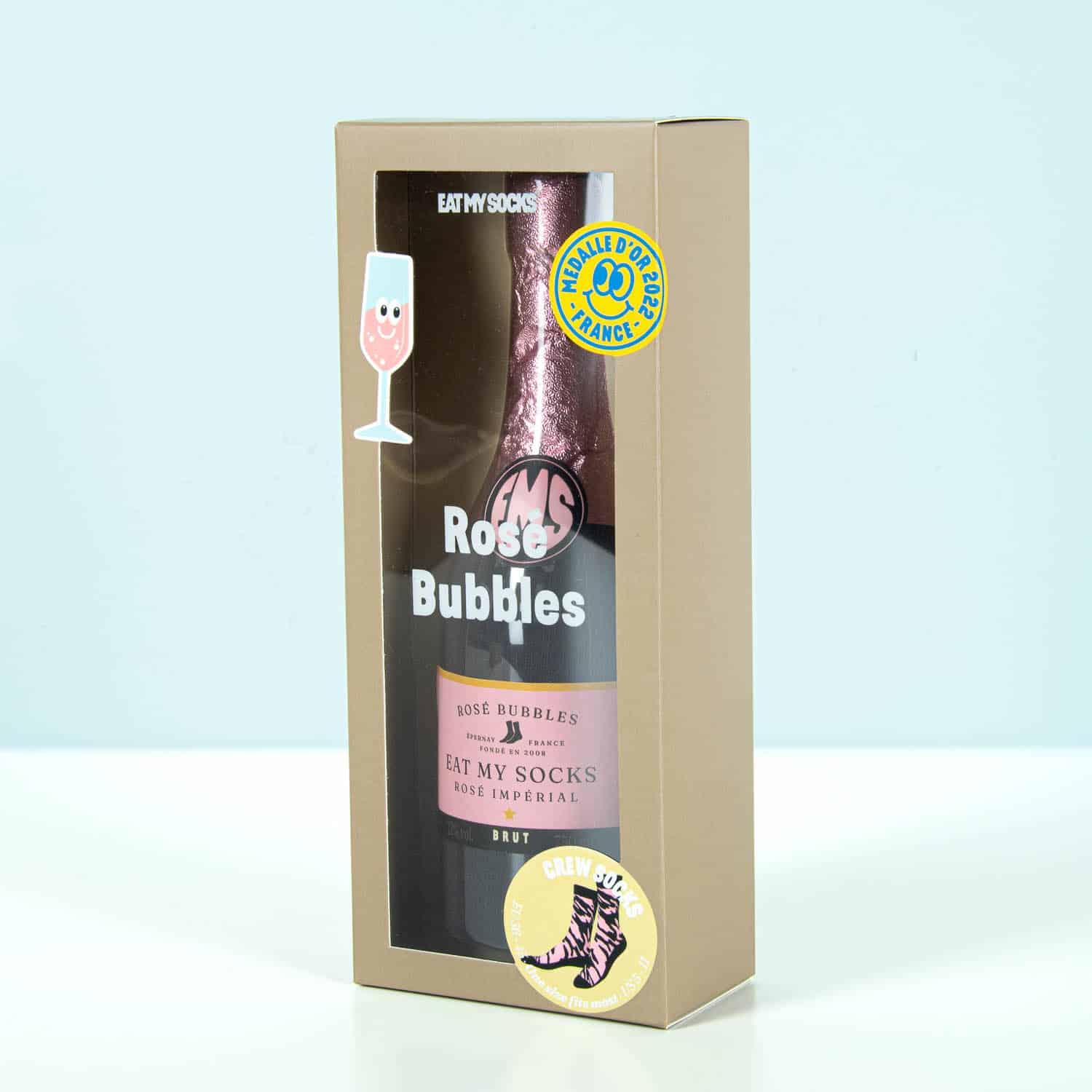 Waar is dat feestje? Nou, aan jouw voeten! De Rosé sokken van Eat My Socks zijn een stel feestelijke sokken, verpakt in een champagnefles. Deze vrolijke sokken zijn een perfect cadeautje om iemand te feliciteren met een nieuwe baan, een nieuw huis of behaald examen. De sokken zitten verpakt in een feestelijke doos en zijn niet alleen leuk, maar ook praktisch.