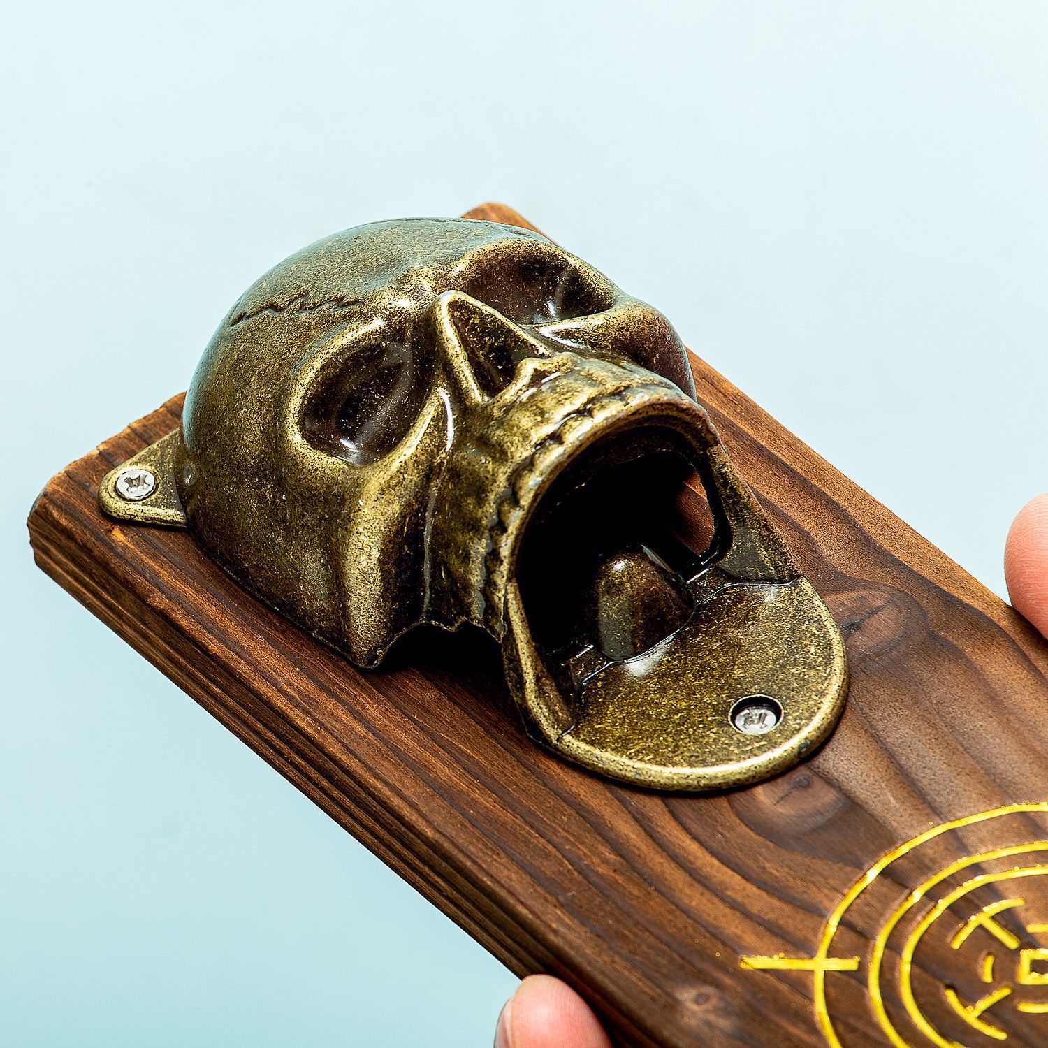 Zoek je een indrukwekkende manier om flesjes bier te openen als je vrienden op bezoek zijn? Dan is de Schedel magnetische flesopener van Gift Republic misschien iets voor jou. Deze stoere bieropener bestaat uit een schedel die je flesje opent met zijn mond en is gemonteerd op een houten achterplaat met magneet. Hierdoor kun je de flesopener op elk metalen object ophangen én vangt hij de bierdopjes op. Leuk voor in de keuken, in de tuin of in je eigen bar.