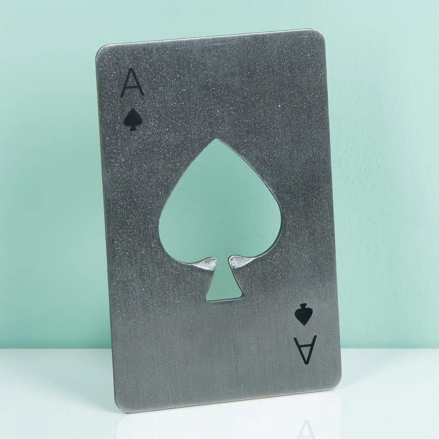 Bier en pokeren, het is favoriet bij veel mannen. Laten wij deze twee nu samengesmolten hebben tot één ontwerp: de Schoppen aas flesopener. Voortaan wip je de kroondop van je flesje bier in een handomdraai eraf met deze speelkaart. Leg ‘m naast je neer tijdens een potje kaarten, zodat je niet hoeft op te staan en je concentratie niet verliest. Nog een extra voordeel is dat deze flesopener altijd in je portemonnee past. Hij is namelijk net zo dun en groot als een creditcard. Misschien moet je daarvoor wel een andere betaalpas uit je portemonnee halen, maar op deze manier kun je wel altijd een biertje openen.