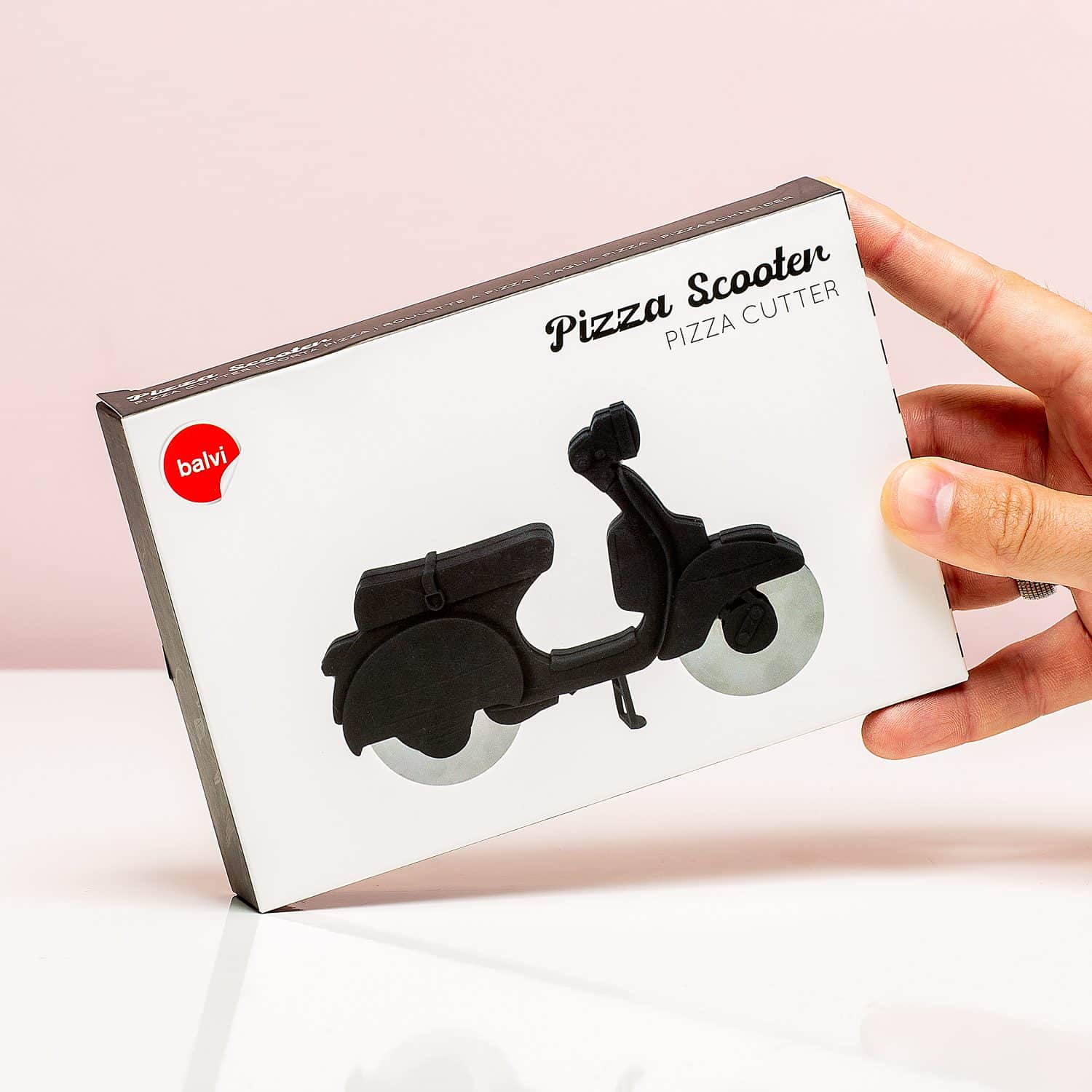 Met je scooter over een pizza rijden: normaal zonde, maar in het geval van de Scooter pizzasnijder van Balvi een uitstekend idee. Dit pizzawiel ziet eruit als een scooter en heeft twee vlijmscherpe wielen van roestvrij staal. De scooter kan zelfs rechtop staan! Als je een keer pizza’s gaat eten met vrienden, zet dan deze unieke pizzasnijder op tafel. Het is gegarandeerd een succes.