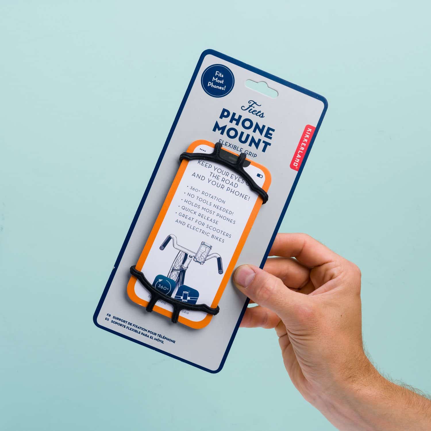 Lekker handig: ergens heen rijden op je fiets of scooter met de navigatie aan. Maar niemand heeft zin in een boete omdat ‘ie een telefoon vasthoudt. Gebruik daarom de Siliconen telefoonhouder voor fiets van Kikkerland. Hiermee maak je je telefoon aan je stuur vast. Zo kun je handsfree navigeren. De houder kan 360 graden draaien, dus je kunt je telefoon zowel horizontaal als verticaal gebruiken.