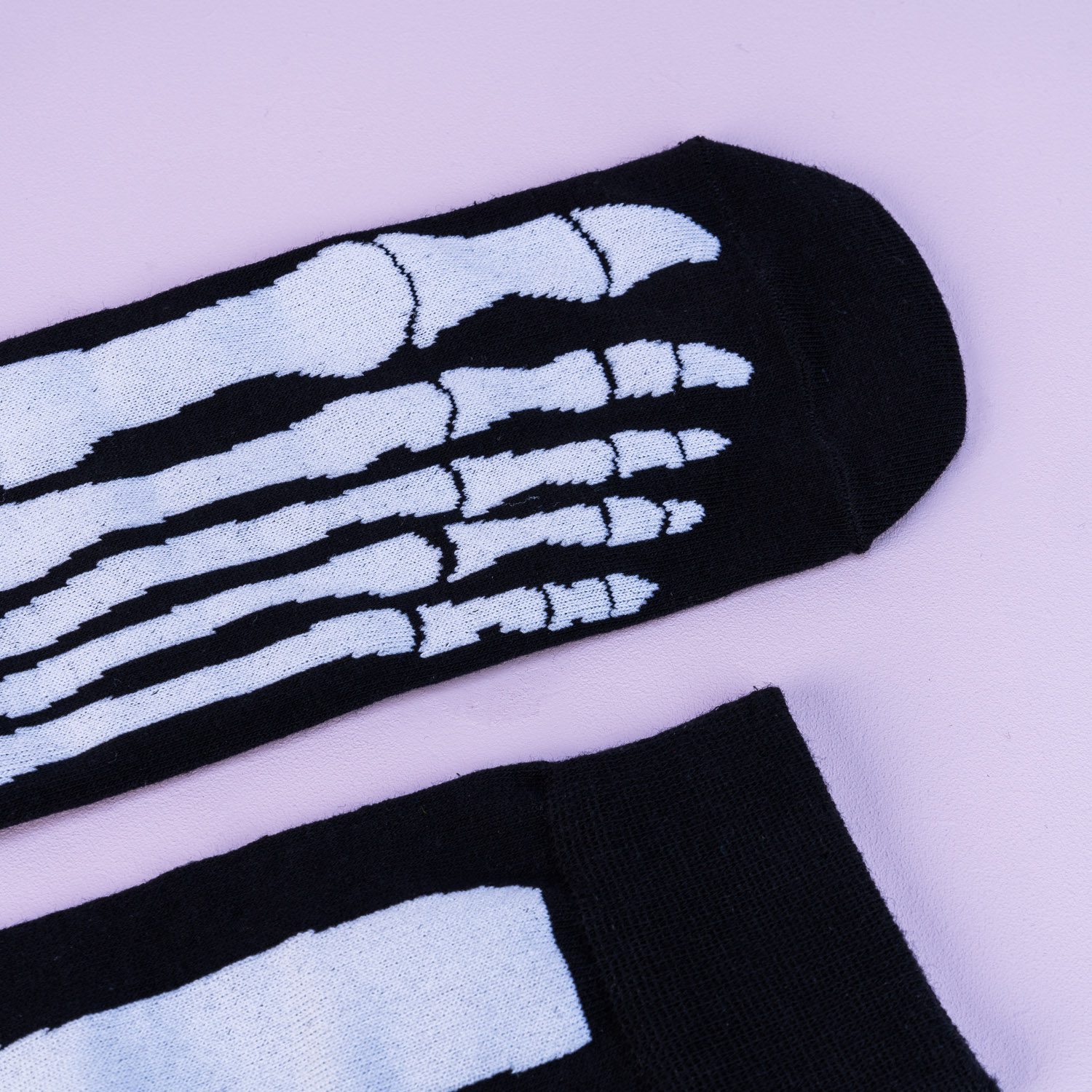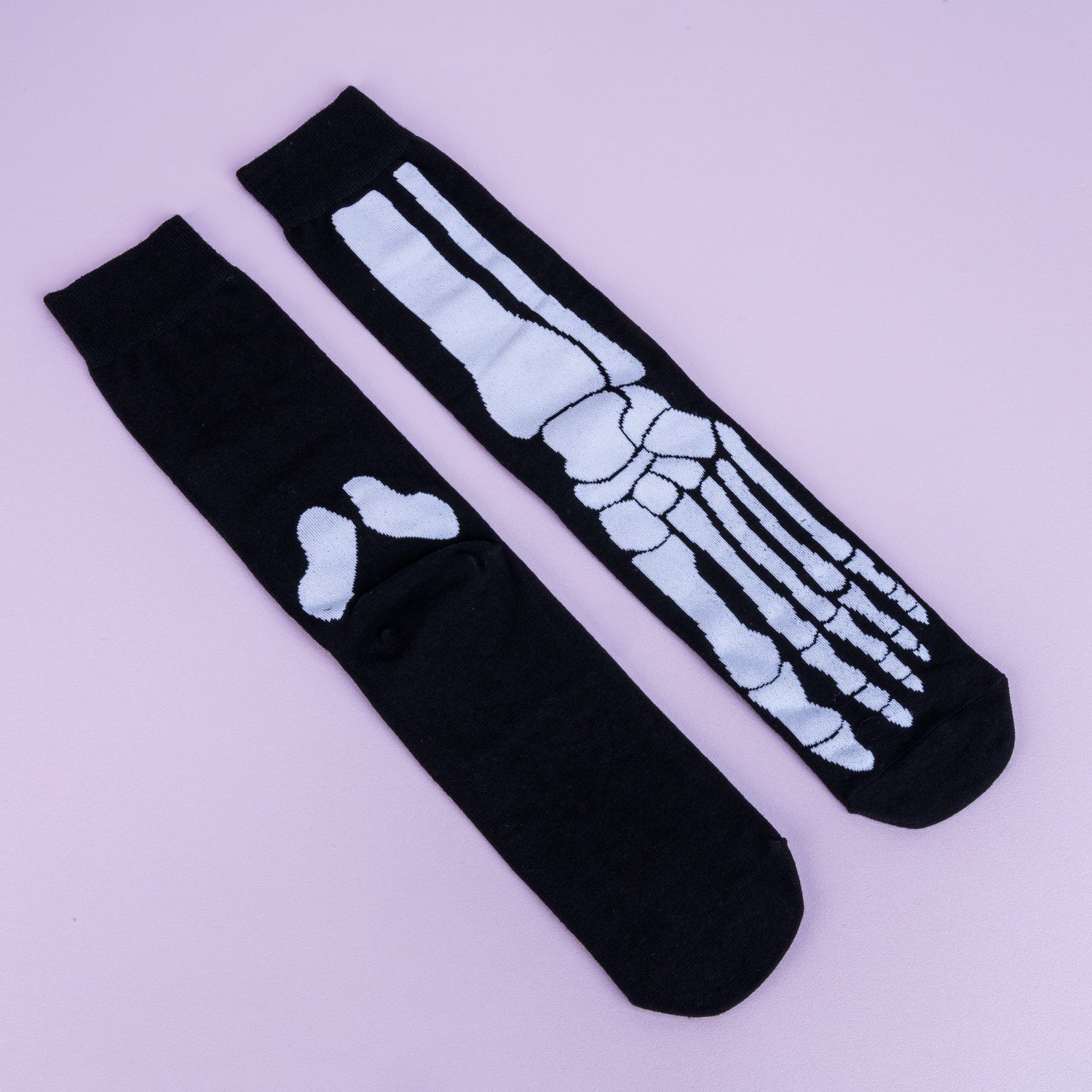 Laat je van je spannendste kant zien, met de Skelet sokken van Winkee. Deze grappige sokken zien eruit als de voeten van een skelet. De witte botten op de sokken steken mooi af tegen de rest van de sokken die zwart zijn. Wil je iemand laten schrikken? Of heb je nog iets nodig om je Halloween-outfit mee af te maken? Deze sokken zijn daar perfect voor!