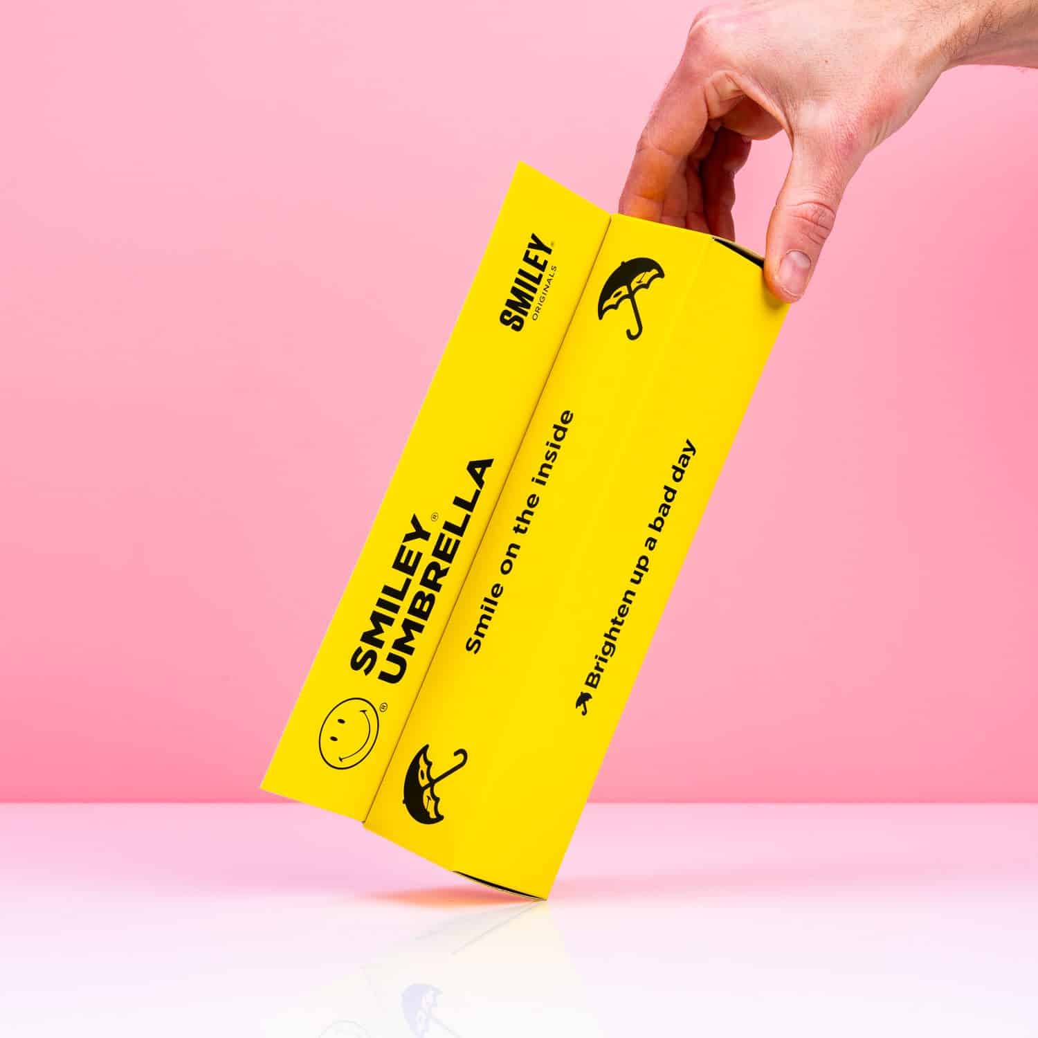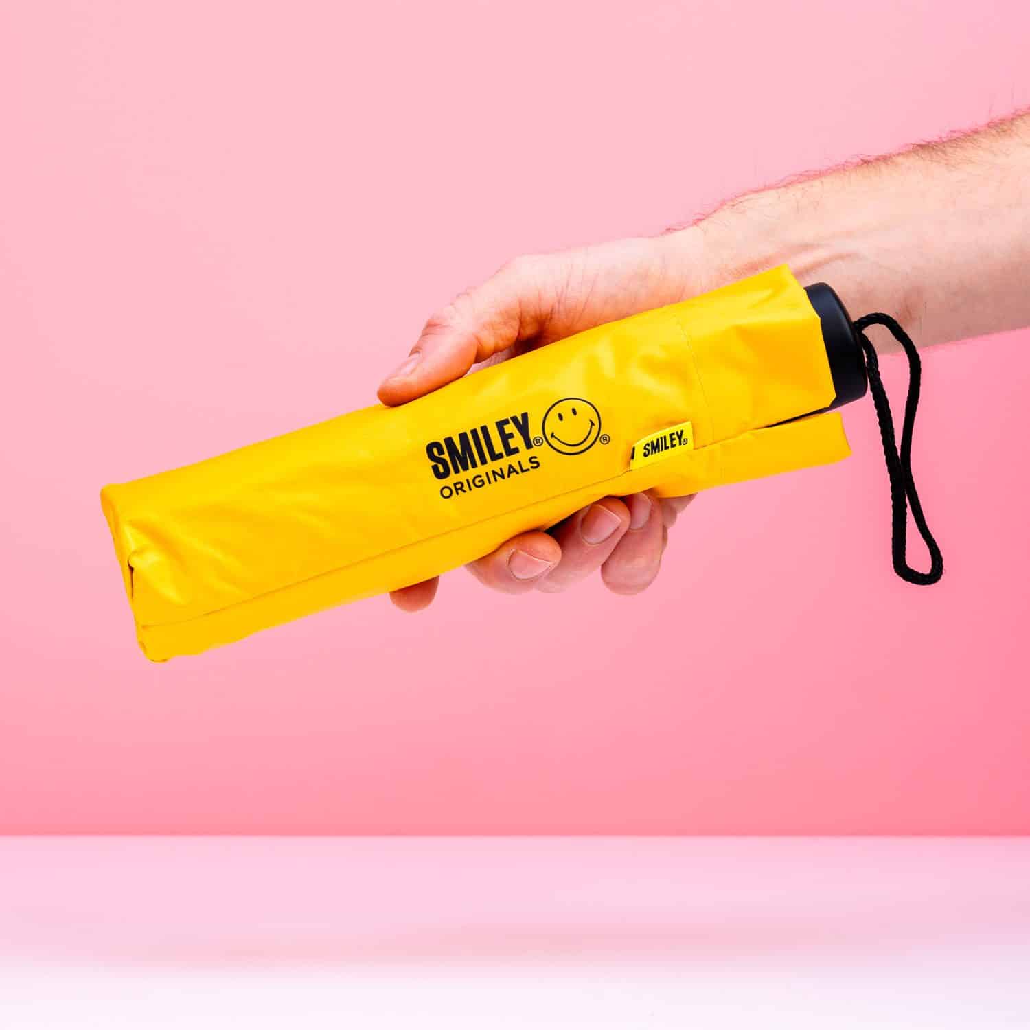 De meeste mensen worden niet echt blij van de regen. Maar als je toch door de regen moet, dan kun je dat maar beter doen met de Smiley paraplu van Suck UK. Deze paraplu tovert bij iedereen een lach op z’n gezicht. Hij is zwart aan de buitenkant, maar als je hem openklapt komt de vrolijke gele smiley in beeld. Wedden dat ‘ie je dag beter maakt?