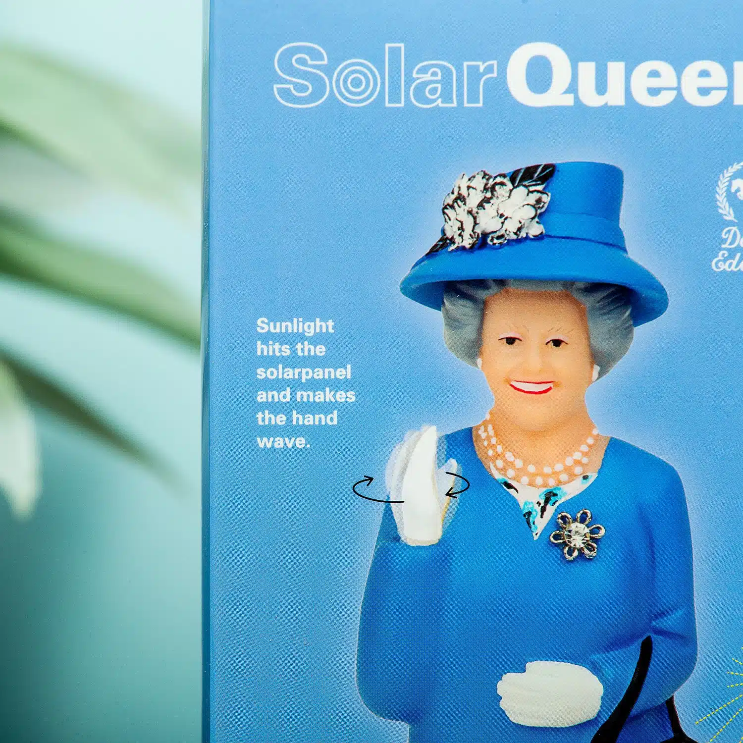 Vrolijk je bureau op met de Solar Queen Elizabeth van Kikkerland. Deze kleine koningin zwaait naar je zodra ze zonnestralen vangt, want zeg nou zelf: van zon wordt iedereen vrolijk. Bovendien werkt dit poppetje op zonne-energie. Met een wuivende koningin Elizabeth wordt het werken aan je bureau meteen een stuk minder saai. Helemaal als je in je eentje op kantoor zit. Er zijn meerdere varianten waar je uit kunt kiezen, namelijk de Derby editie en de Jubilee editie.