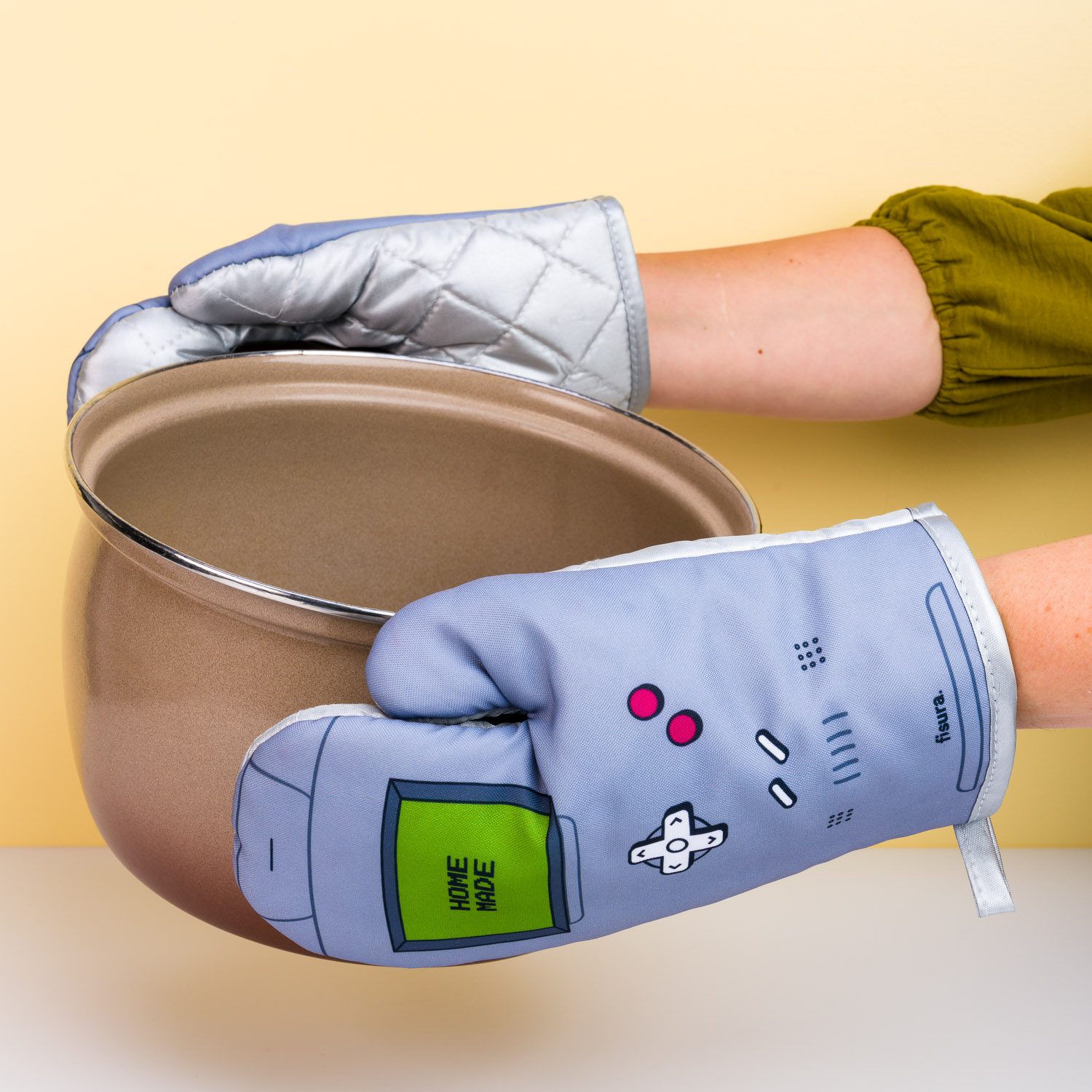 Roepen de Spelcomputer ovenwanten (set van 2) van Fisura bij jou ook direct een gevoel van nostalgie op? Iedereen die in de 90s met de GameBoy speelde, herkent het iconische uiterlijk waar deze ovenhandschoenen op gebaseerd zijn. Maar hiermee kun je niet gamen: ze zijn vooral bedoeld om je handen te beschermen als je je taart uit de oven haalt. De ovenwanten komen in een setje van twee.