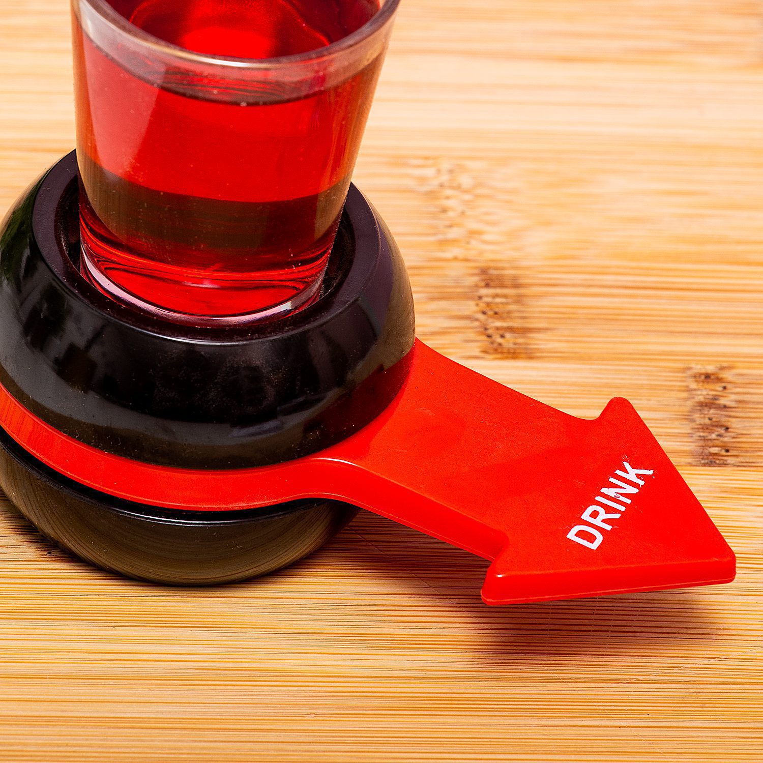 Een drankspelletje met simpele regels: dat is altijd een goed idee. Helemaal als jullie al een tijdje aan het spelen zijn. Het Spin the Arrow drankspel van Out of the Blue is heel eenvoudig: degene naar wie de pijl wijst moet het shotglaasje leegdrinken.