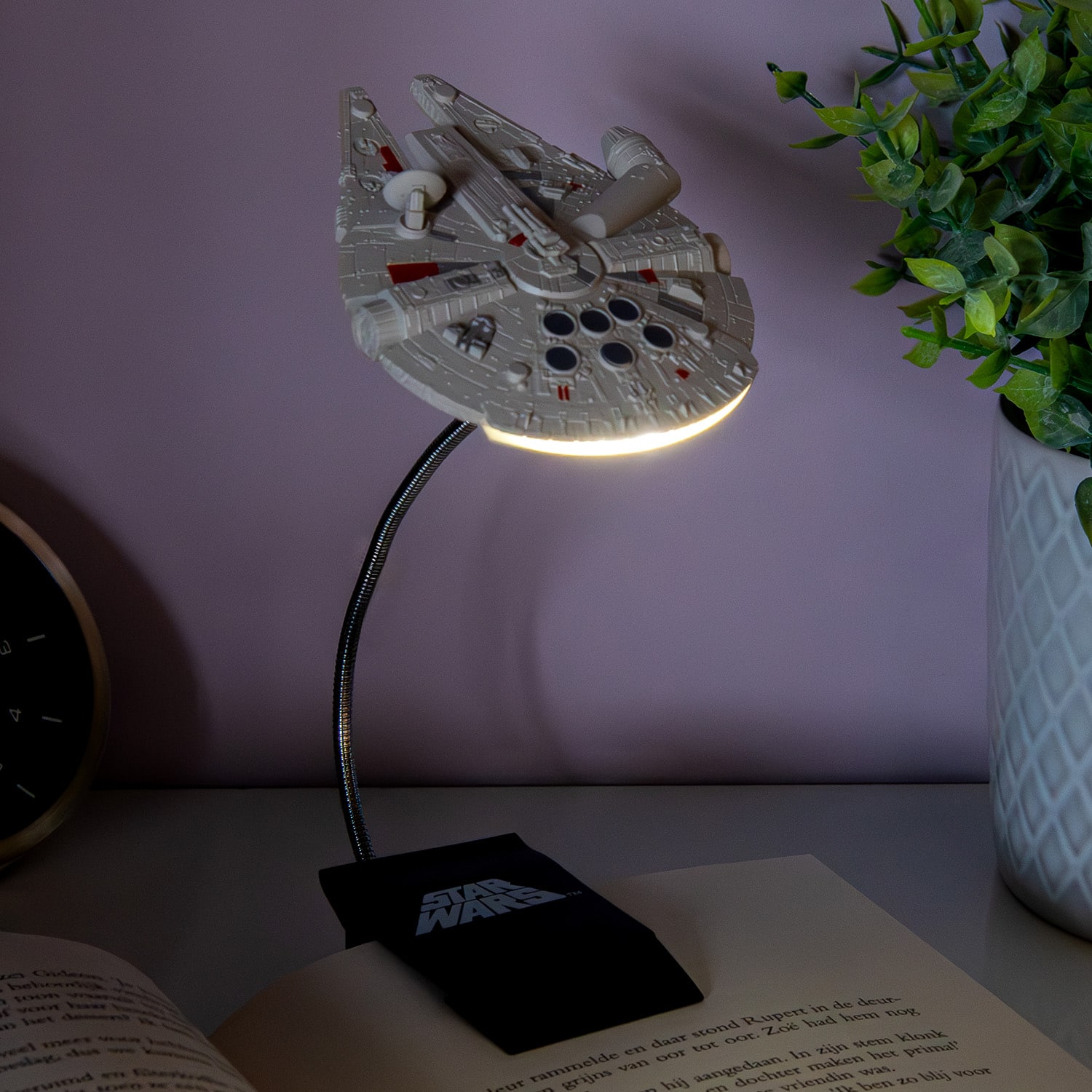 Is het te donker in je kamer om goed te kunnen lezen of je huiswerk te kunnen maken? Han Solo helpt je uit de brand met zijn schip. Het Millennium Falcon boeklampje van Star Wars is namelijk voorzien van het gelijknamige ruimteschip. Het lampje klem je eenvoudig aan je boek vast en door de flexibele stang heb je altijd licht op de juiste plek. Een perfect cadeau voor fans van Star Wars.