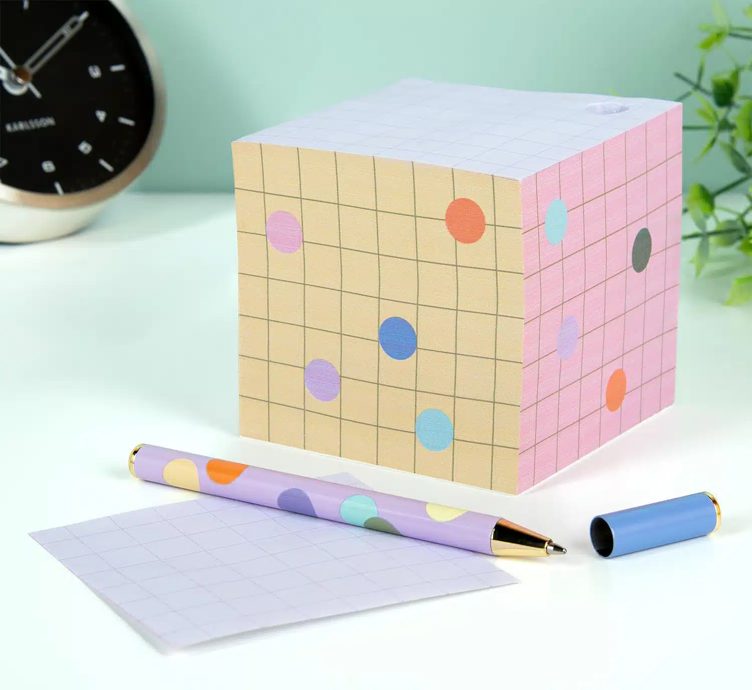 Mooie bureauaccessoires maken (huis)werk een stuk leuker. De Sticky notes penhouder van Kikkerland is zo’n item dat het schrijven van memo’s en noteren van boodschappen leuker maakt. Dit blok bestaat uit 580 sticky notes in vrolijke pastelkleuren. Maar dat is niet het enige leuke: hij heeft ook een opening in de hoek, waar een bijpassende pen in zit. Zo heb je altijd een pen bij de hand om iets op te schrijven.