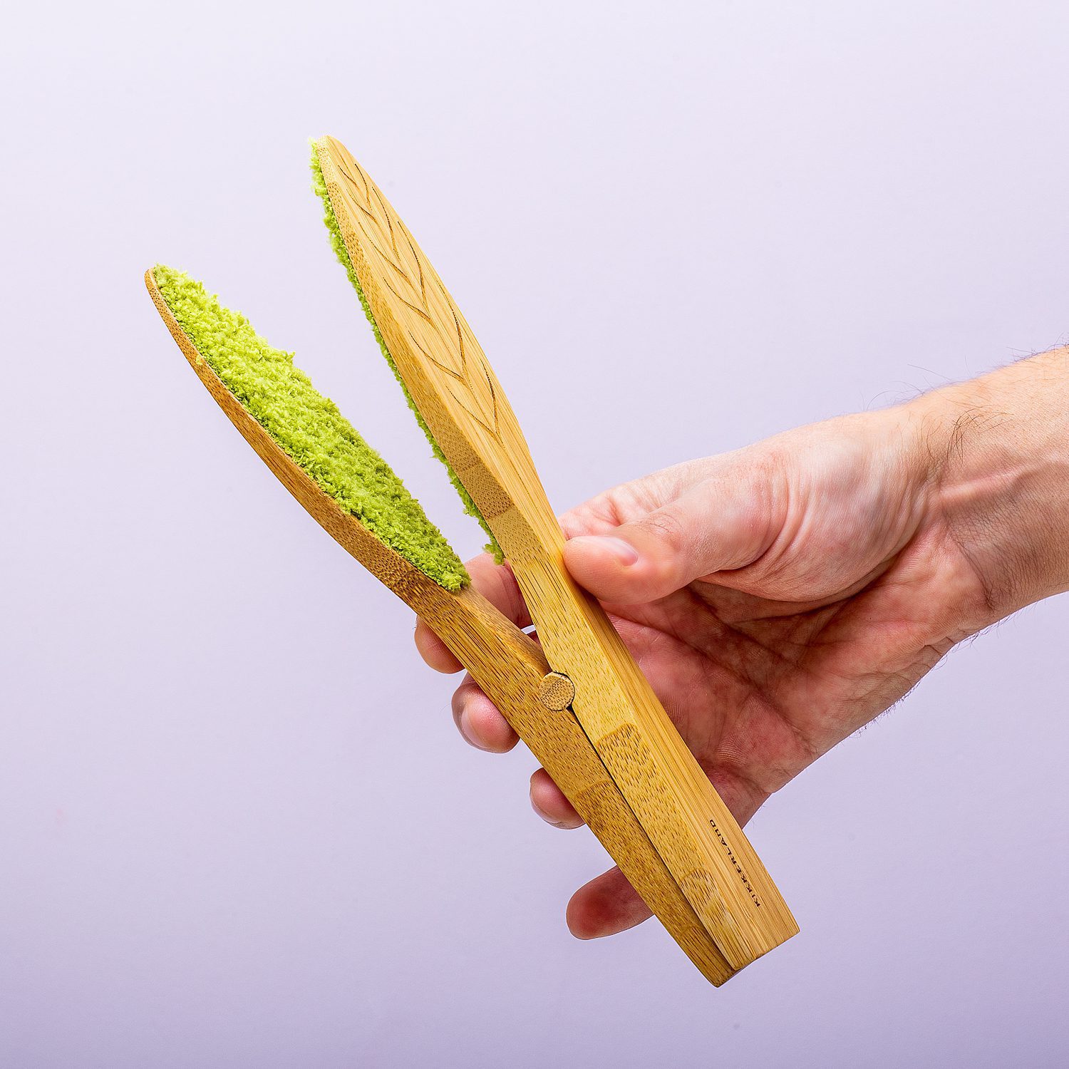 Geef je stoffige planten een opfrisbeurt met de Stoftang voor planten van Kikkerland! Deze tang is eenvoudig in gebruik: je klemt een blad tussen de bamboe delen en veegt zo het stof eraf. De delen zitten met een magneetje aan elkaar vast: voor grote bladeren kun je de beide delen dus eenvoudig losmaken van elkaar. Na een poetsbeurt met deze handige tang stralen je planten je weer tegemoet!