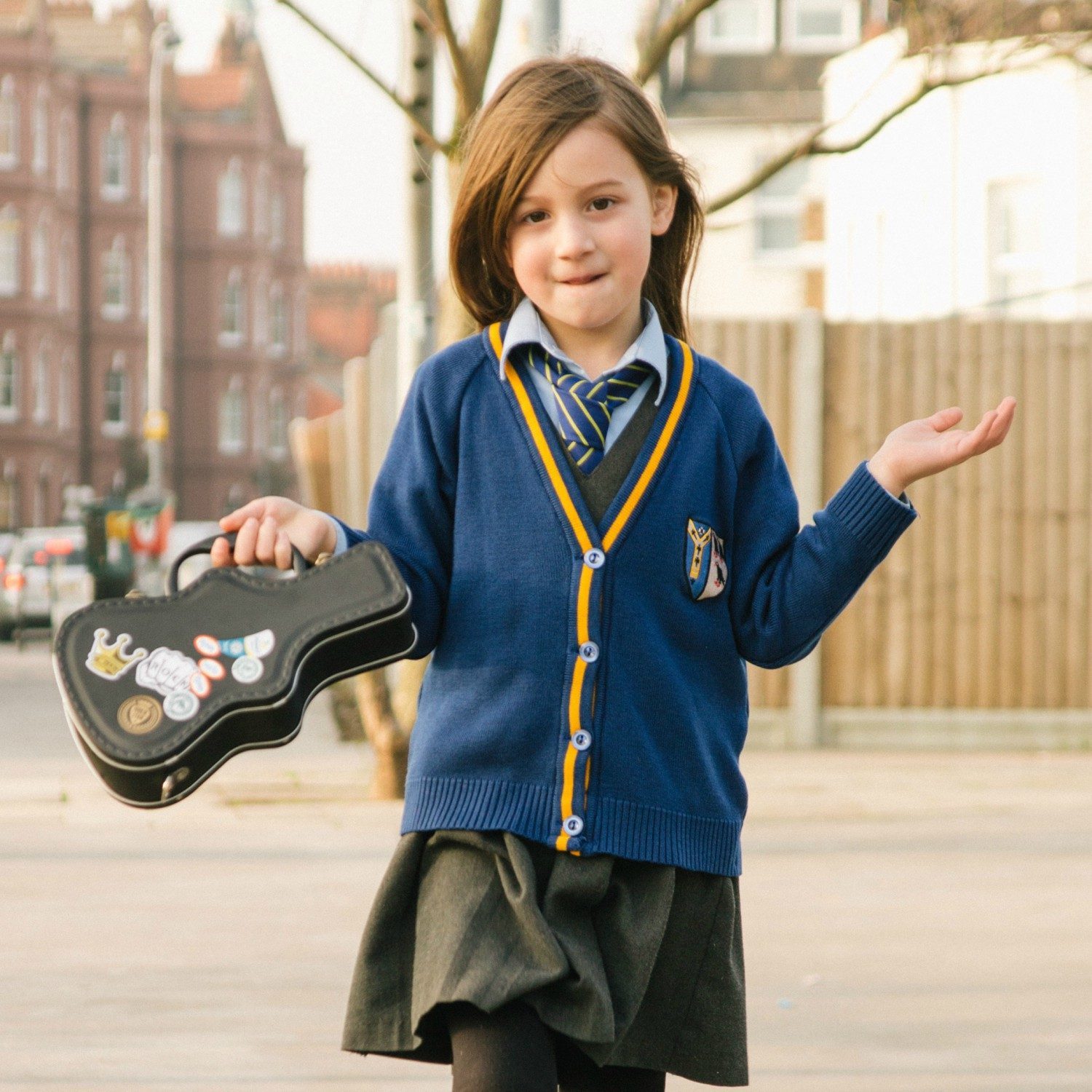 De Gitaarkoffer lunchbox van Suck UK maakt van jouw lunchpauze een rockfeest. De prachtig vormgegeven lunchbox in de vorm van een gitaar, biedt ruimte aan je boterhammen, fruit en snacks. Iedereen ziet gelijk hoe muzikaal jij bent. Met de tien extra stickers die je erbij krijgt, kun je de lunchbox nog verder personaliseren, zodat hij helemaal bij je past. Versier hem met stickers van je favoriete band, of plak hem vol met fruitstickers om te laten zien dat je goed bezig bent. Aan het handige handvat neem je de lunchbox mee naar school of het werk. Voortaan eet jij je boterhammen in stijl!