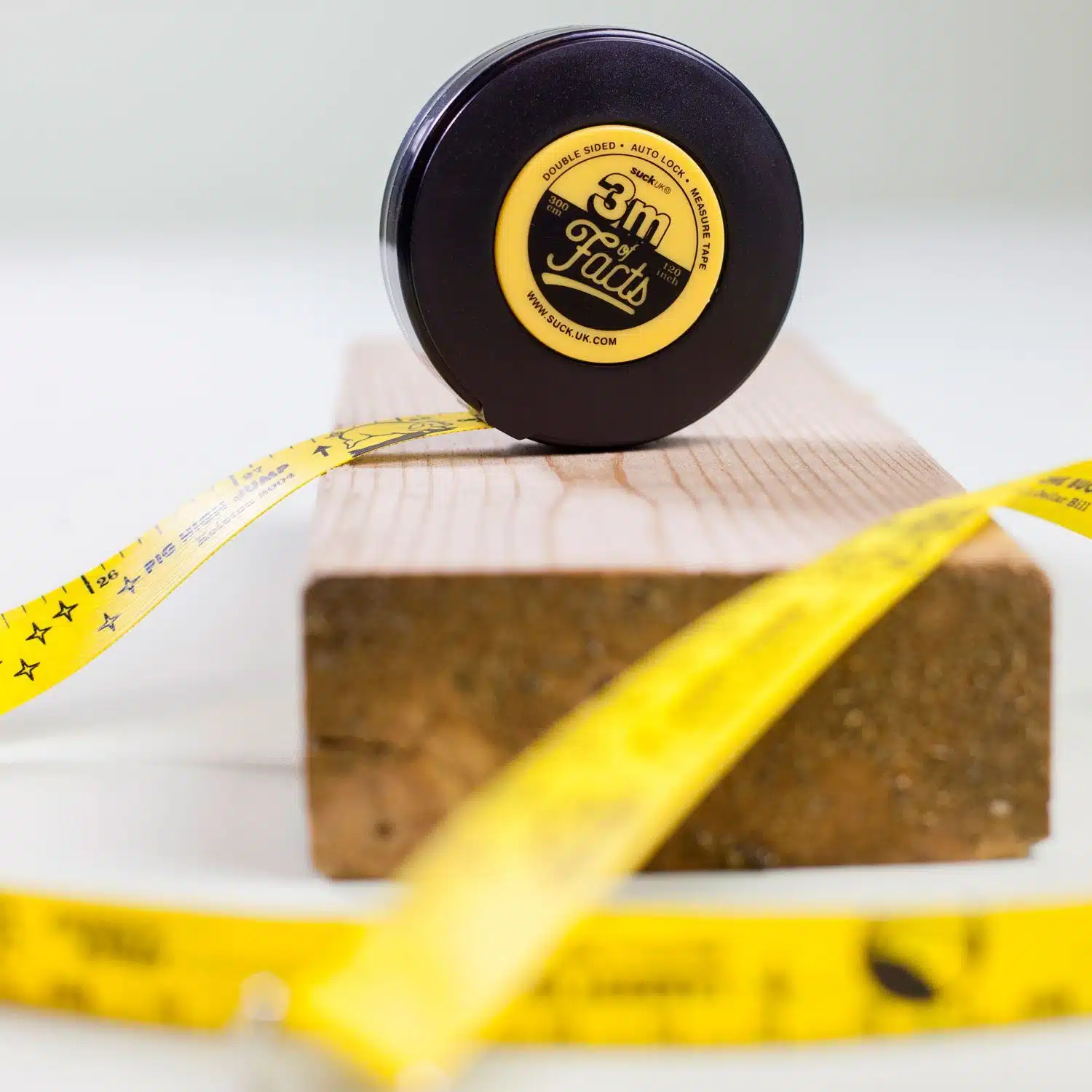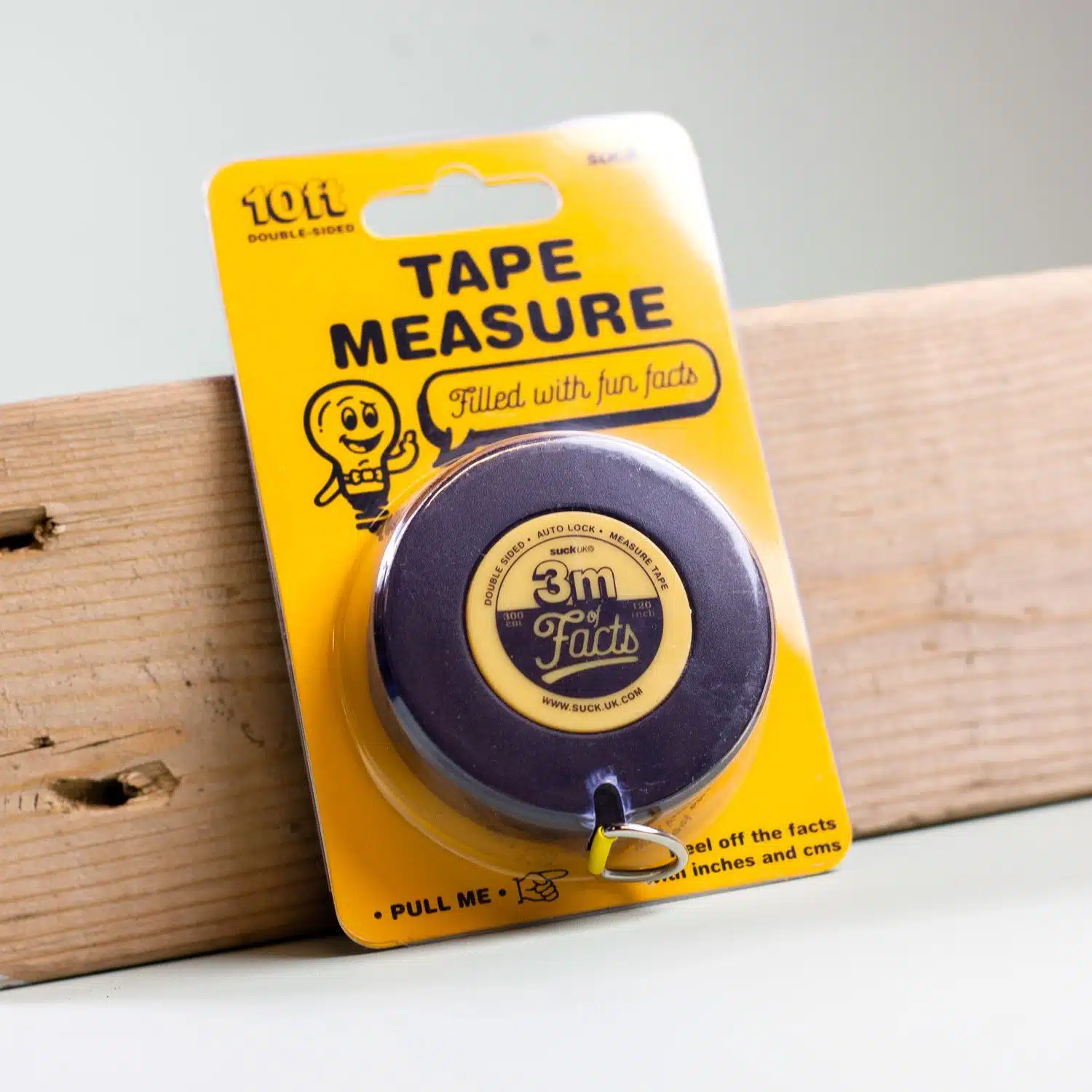 Een rolmaat is onmisbaar bij vele dingen: dingen opmeten, iets op gelijke hoogte ophangen of gekke feitjes opnoemen, bijvoorbeeld. Dit Meetlint met feitjes van Suck UK voorziet je van 60 wetenschappelijke feiten. En vooruit, ook wat minder wetenschappelijke feiten. Wist je bijvoorbeeld dat een keizerspinguïn met een hoge hoed op even groot is als het voorste wiel van een ouderwetse fiets? En dat een vlo 18 centimeter kan springen? Dit meetlint is in totaal 3 meter lang en heeft zowel een metrische en imperiale kant. Kun je direct even opmeten of een Oscar op jouw plank zou passen.