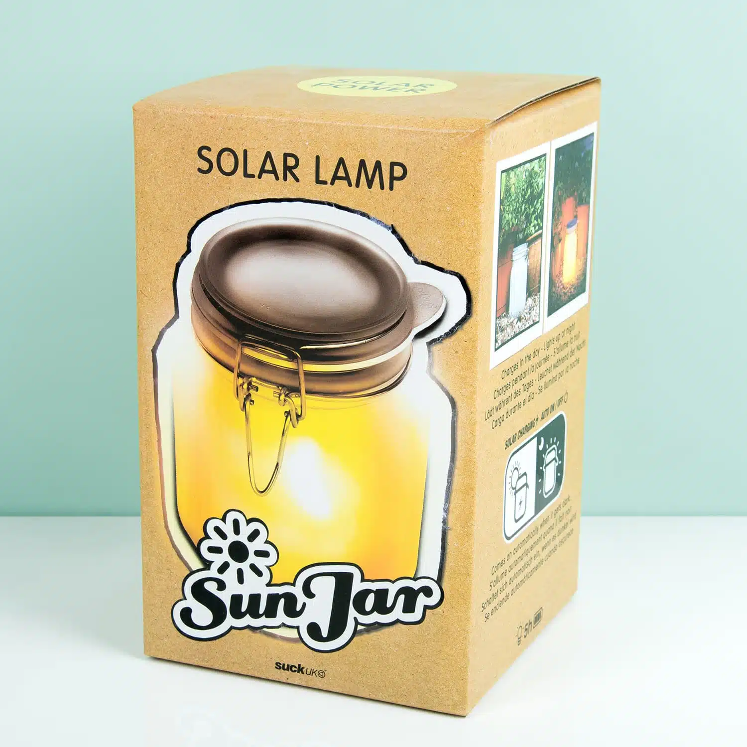 Zonlicht opslaan in een potje? Dat is precies wat de Sun Jar lamp op zonne-energie van Suck UK doet. Deze weckpot laat je overdag een paar uur in de zon staan zodat je ’s avonds kunt genieten van sfeervol licht. De Sun Jar lamp heeft een zonnecel waardoor hij overdag zonlicht verzamelt en als het donker wordt, wordt de opgeslagen energie gebruikt. Hierdoor gaat de lamp automatisch branden. Hoe donkerder het wordt, hoe feller de lamp gaat schijnen. De lamp geeft geel licht. Wil je niet dat de lamp automatisch gaat branden in het donker, zet dan het knopje onder het deksel om van ‘auto’ naar ‘charge’.
