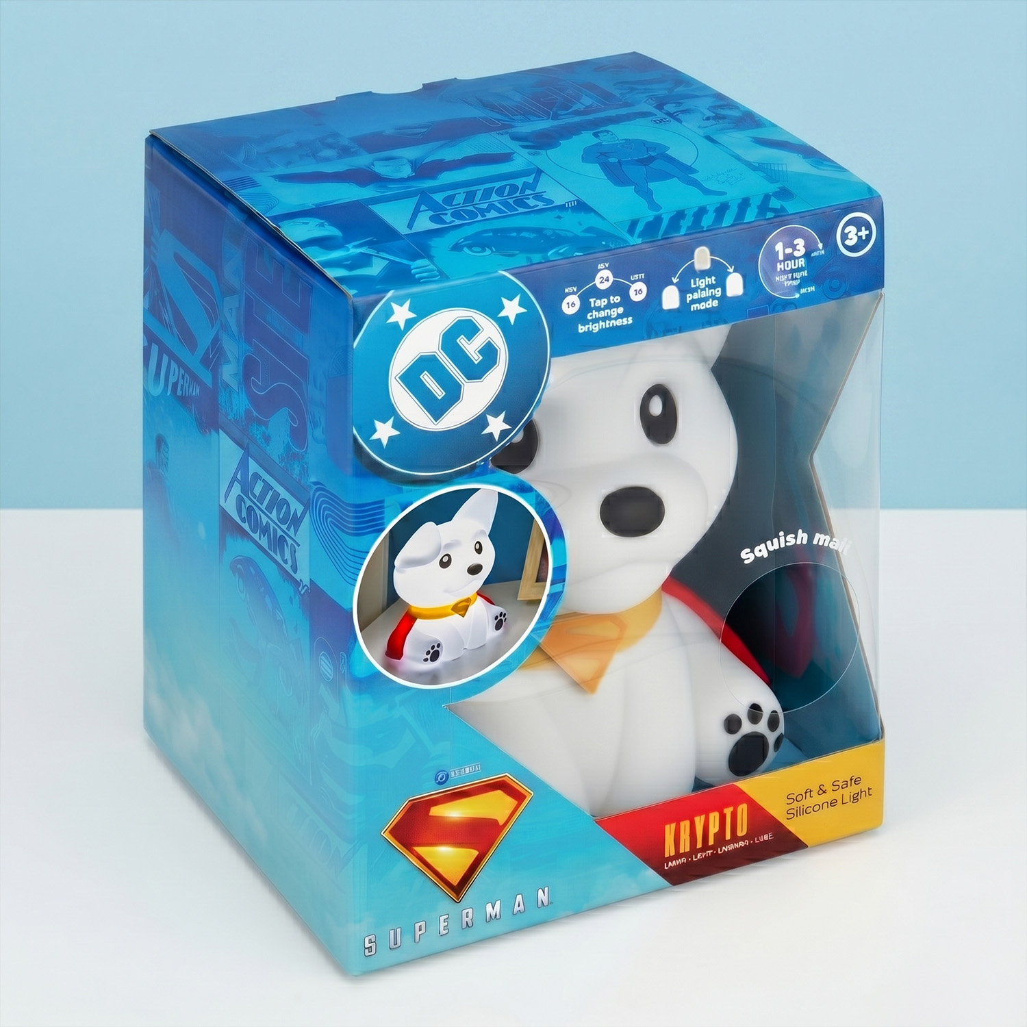 Zelfs Superman heeft backup nodig… en die komt in de vorm van Krypto. Dit Superman Krypto siliconen lampje lijkt sprekend op zijn trouwe viervoeter en staat klaar om jouw kamer te laten shinen. Zacht, knijpbaar en met een rustgevend schijnsel dat perfect is voor je nachtkastje. Tik op Krypto om de helderheid aan te passen en zet de nachtmodus aan als je ’m automatisch wilt laten uitschakelen na 1 tot 3 uur. Superkracht niet inbegrepen, maar sfeer zeker wel.