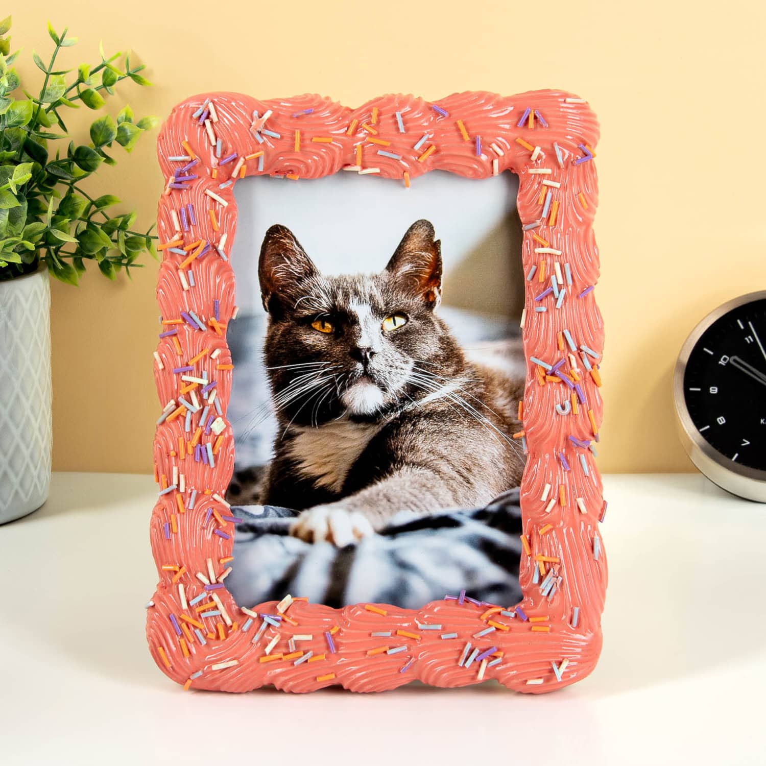 Ben jij dol op unieke woonaccessoires? Het Taart fotolijstje van DOIY is er één van! Dit vrolijke fotolijstje ziet eruit alsof het versierd is met taartdecoratie: de rand lijkt op slagroom, versierd met sprinkles. Het is het perfecte lijstje voor een foto van jou en je vrienden op een feestje of voor de verjaardagsfoto van een kind. Ook leuk: doe er een mooie foto in en geef dit feestelijke fotolijstje cadeau.