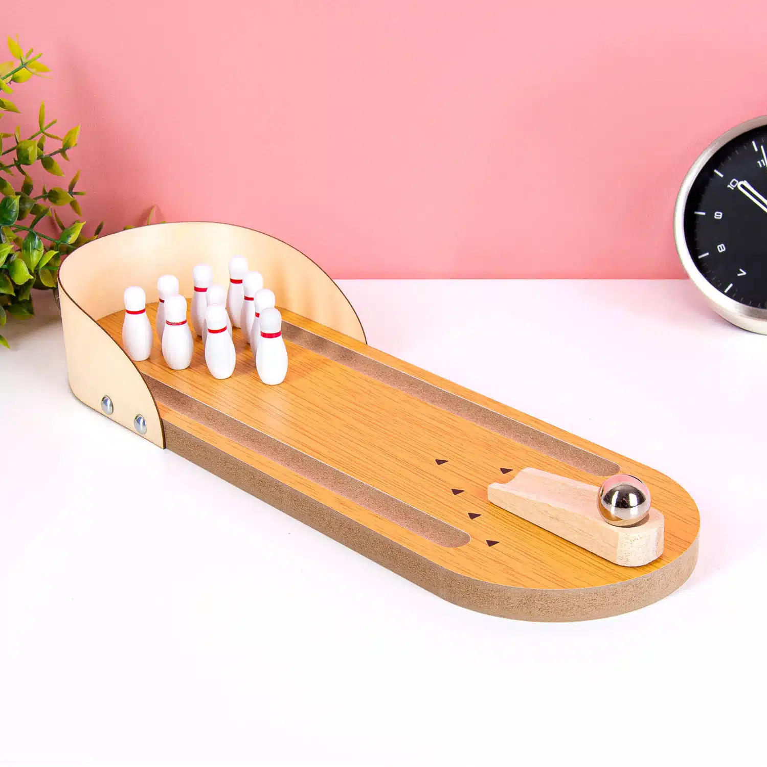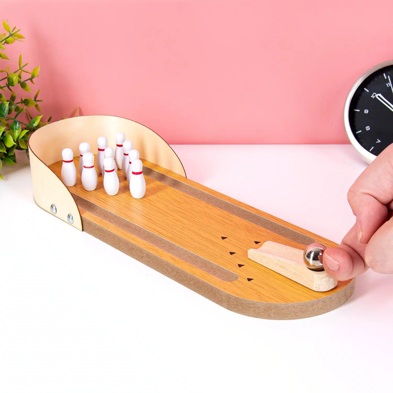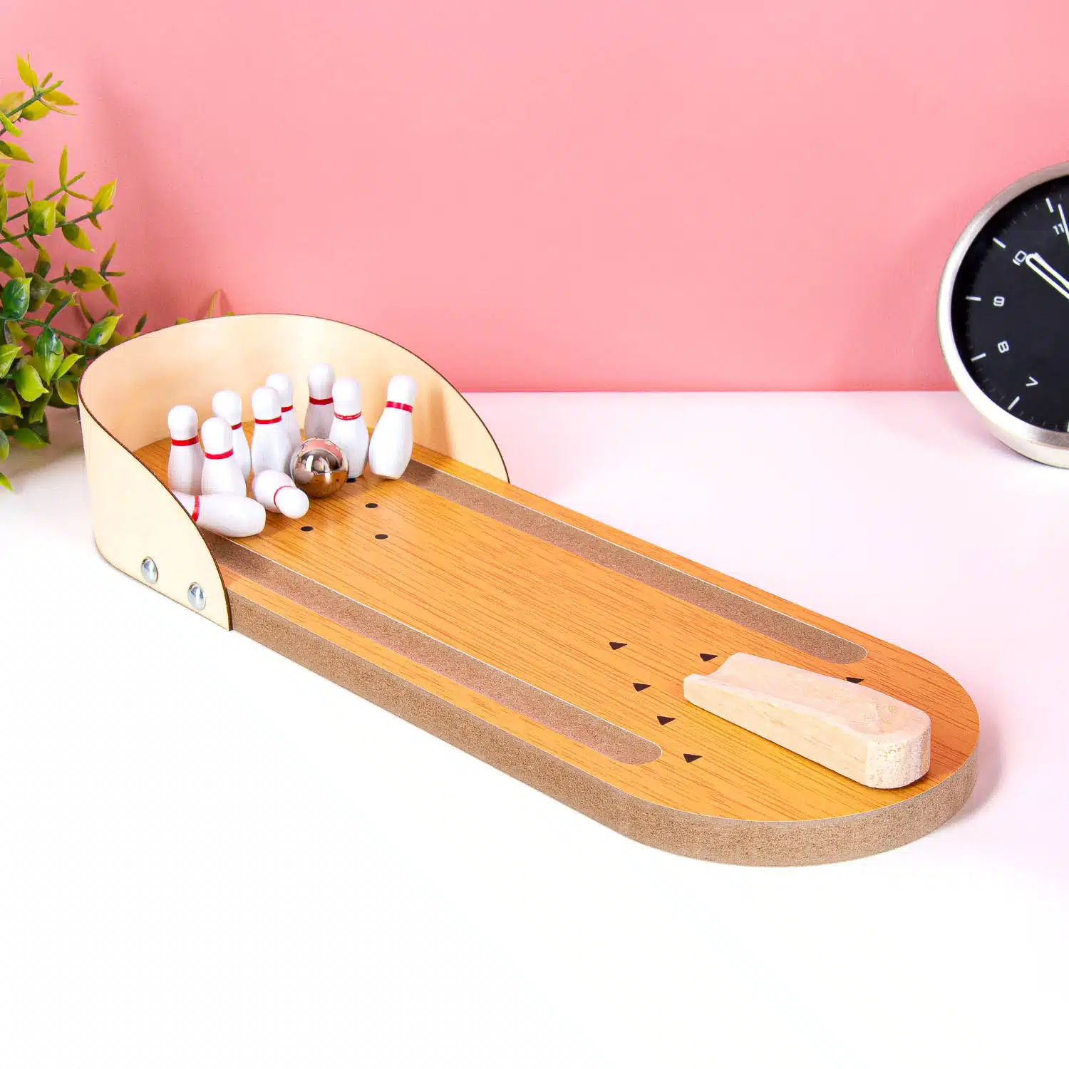 Ben je een fanatiek als je spelletjes speelt? Met het Tafel bowlingspel kun je altijd en overal je vrienden verslaan. Dit bowlingspel komt met een baan, tien kegels, een bal en een ramp waar de bal vanaf rolt.