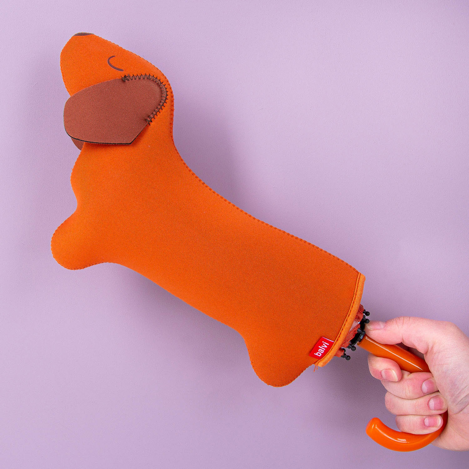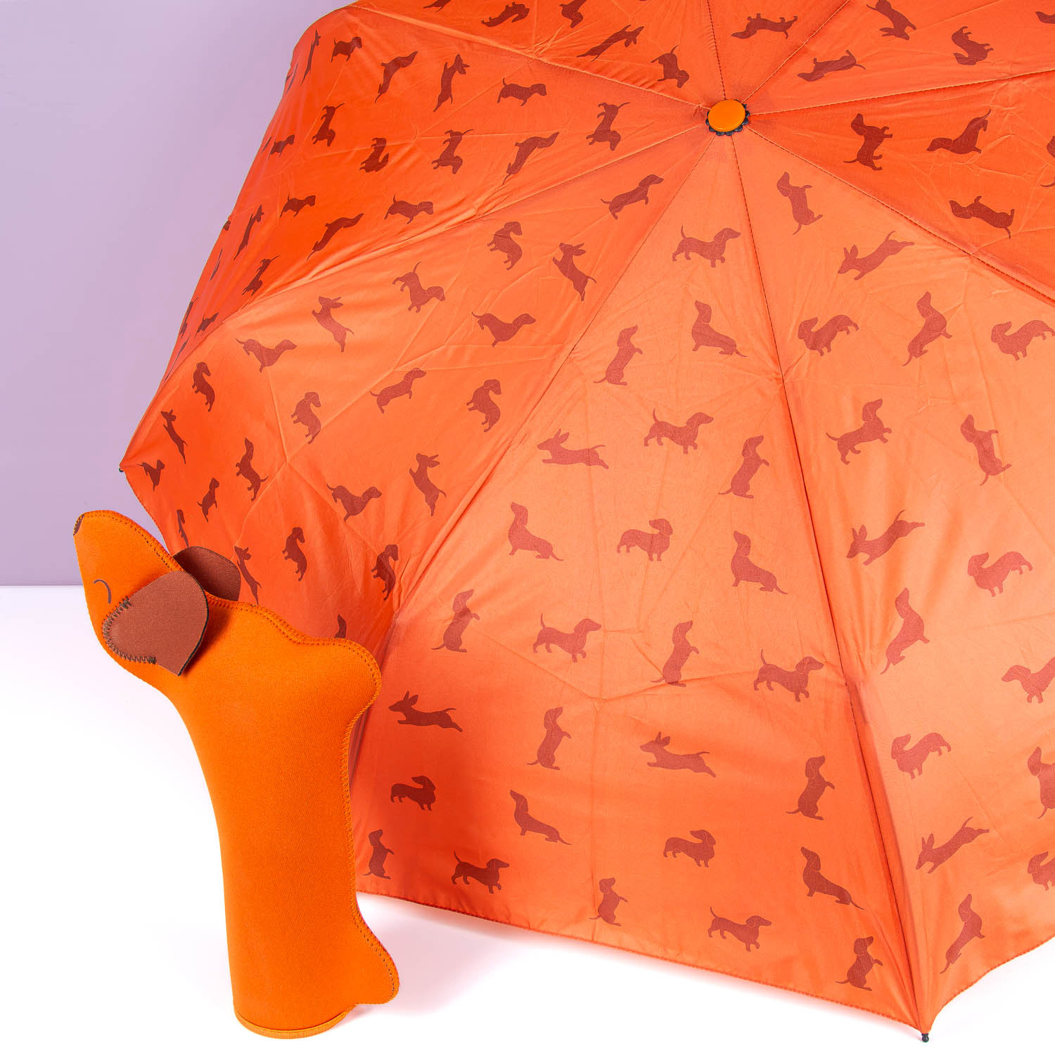 Paraplu’s zijn saai. Tenzij ze eruit zien als een teckel! De Teckel paraplu van Balvi is een compacte paraplu in een neopreen hoes die de vorm heeft van een schattige teckel. De paraplu zelf is bruin en versierd met allemaal kleine teckels, zodat je ook bij grijs weer de show steelt. Klein genoeg voor in je tas, groot genoeg om droog te blijven.