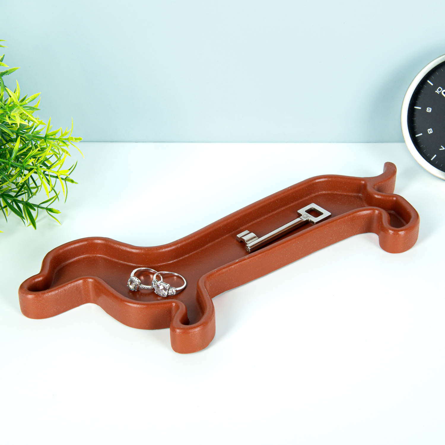 Het Teckel sieradenschaaltje van Kikkerland is er voor iedereen die van teckels houdt én altijd zijn spullen kwijt is. Dit extra lange terracotta schaaltje heeft de vorm van een teckel en is perfect voor sieraden, sleutels, muntgeld of pennen. Zet hem in de gang, op je nachtkastje of op je bureau en je weet altijd waar je spullen zijn.