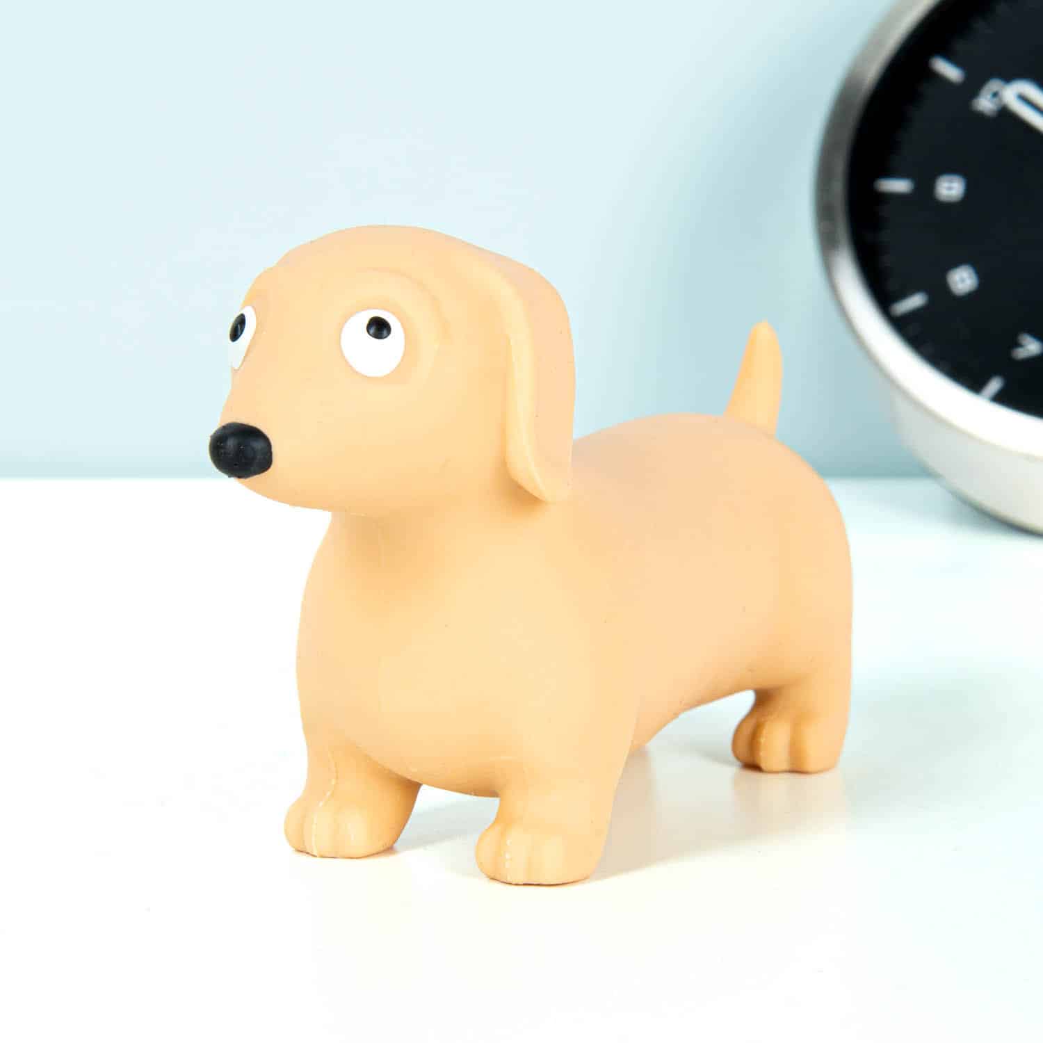 Knijp je stress weg met deze Teckel stresstoy van Winkee. Deze langgerekte hond is perfect om mee te knijpen, rollen of gewoon mee te spelen. Het leuke teckel-design maakt het niet alleen een praktische stressverlichter, maar ook een grappig accessoire voor je bureau of tas. Perfect cadeau voor hondenliefhebbers, mensen met stress of iedereen die van schattige anti-stress speeltjes houdt!