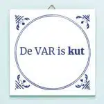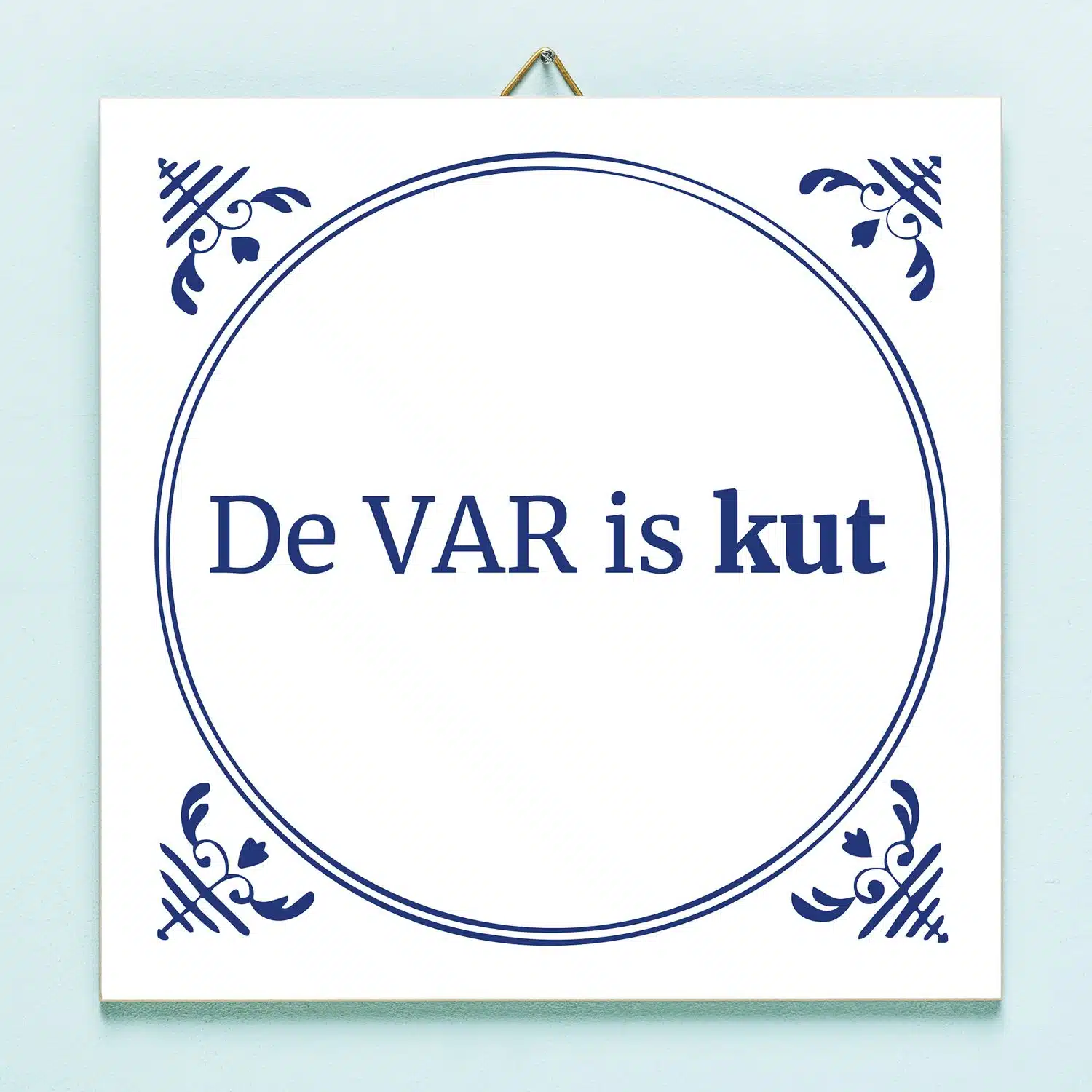 Is je vader of vriend een gepassioneerde voetballiefhebber? Dan hoor je hem vast regelmatig tieren tegen de tv. Het Tegeltje De VAR is kut is speciaal voor hem ontworpen. Op het op Delfts blauw geïnspireerde tegeltje staat de tekst: de VAR is kut. Speciaal voor in zijn mancave.