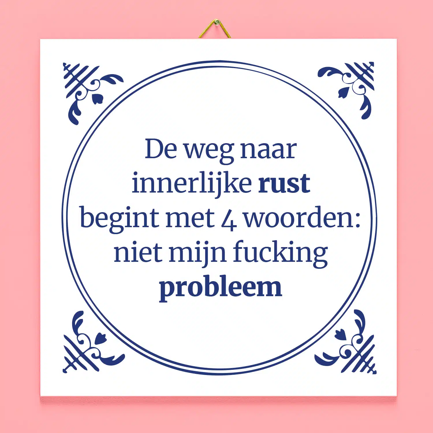 Jij bent helemaal zen en iedereen wil weten hoe dat kan. Het Tegeltje De weg naar innerlijke rust verklapt je geheim. Op het tegeltje staat de tekst: De weg naar innerlijke rust begint met 4 woorden: niet mijn fucking probleem.