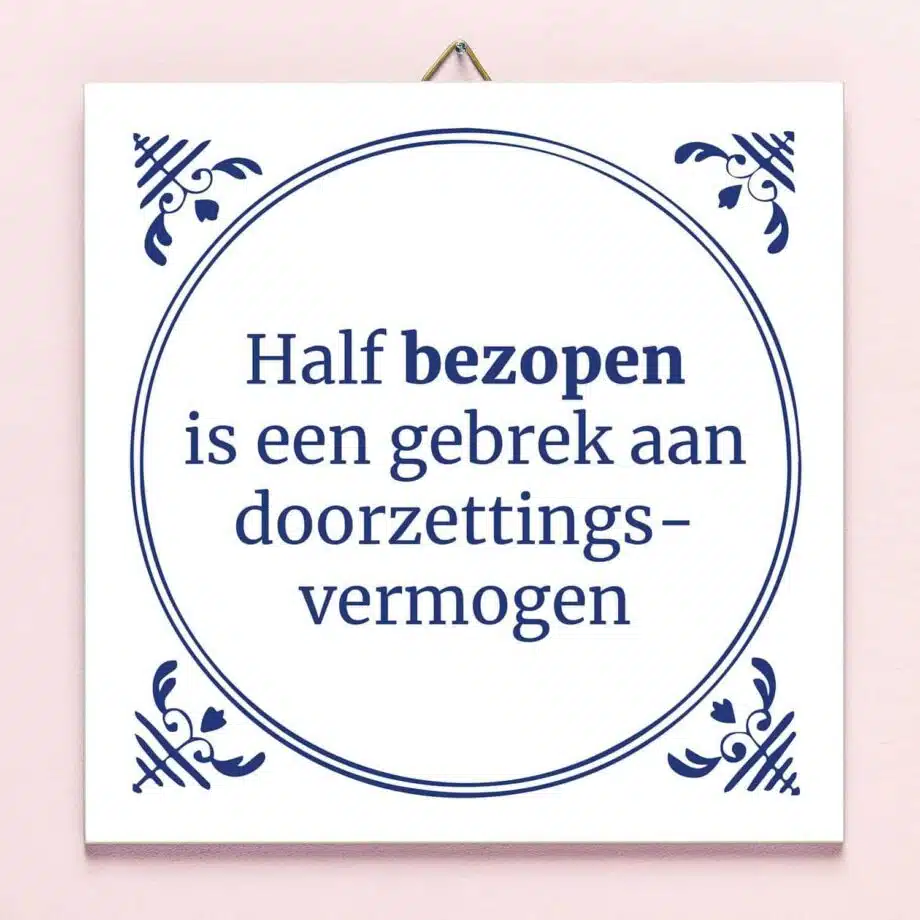 Tegeltje Half bezopen is een gebrek aan doorzettingsvermogen