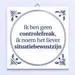 • Tegeltje met tekst: Ik ben geen controlefreak, ik noem het liever situatiebewustzijn