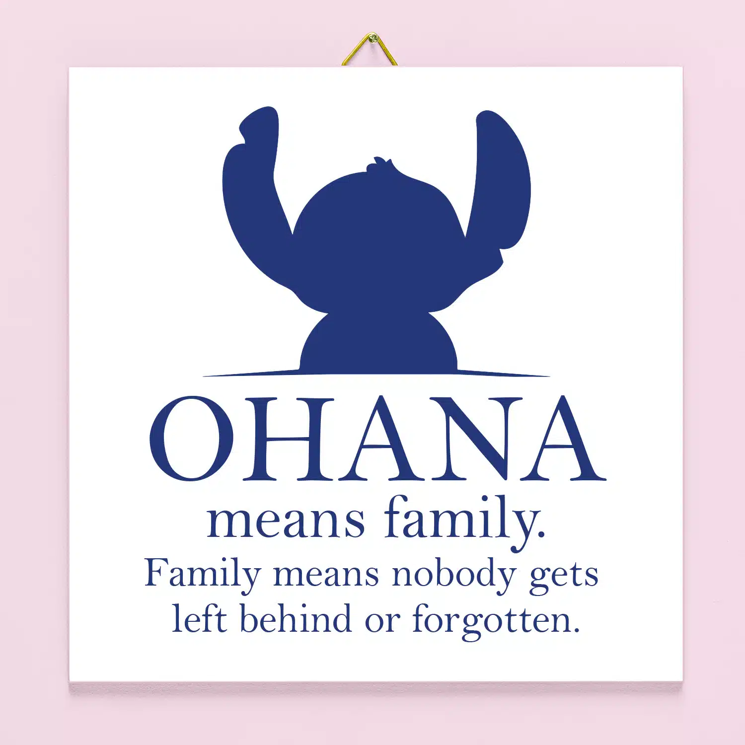 Ben je dol op Lilo & Stitch en gaat jouw familie voor alles? Kies voor het Tegeltje Ohana Means Family en geef het een mooi plekje in huis. Op het tegeltje zie je Stitch en de tekst: Ohana means family. Family means nobody gets left behind or forgotten.