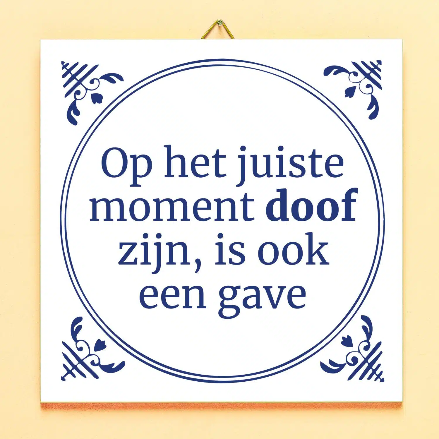 Tegeltje Op het juiste moment doof zijn, is ook een gave